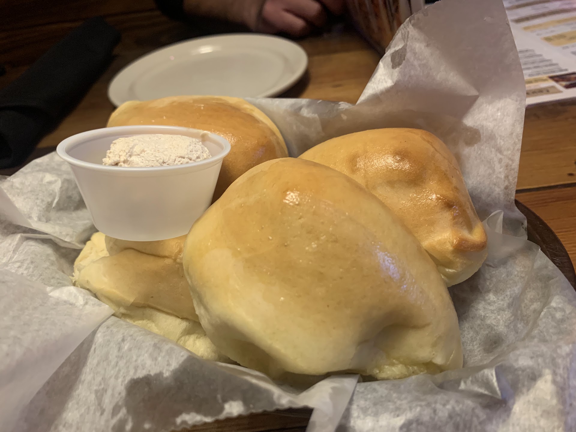 Overall I’m giving 4 stars despite the long wait, alcohol drinks that are mostly ice, cold Mac and cheese and the salty rattlesnake bites because I really do love the bread rolls and the pulled pork sandwich is delicious! Our server was great too so that’s worth mentioning.