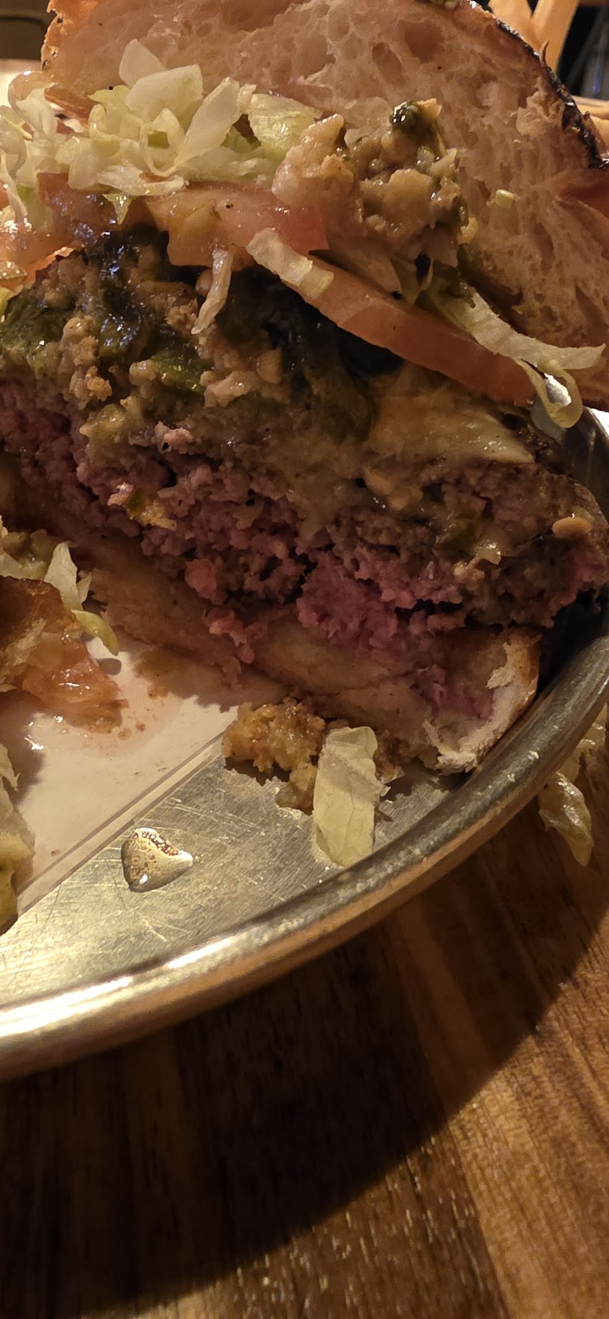 We order our food. I have the kobe burger medium and she has the toreado mac and cheese burger add pickles to cut some of the richness of the burger well done.