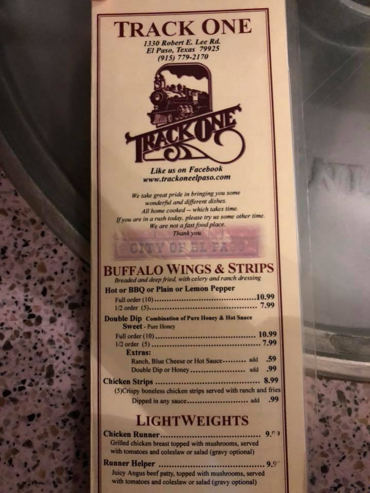 Read moreEdit: on my iPad, I was able to add photos. You can see how one wing was bit into in one photo, and the picture my friend took of our uneaten food, and my unfinished drink. Track One was horrible!