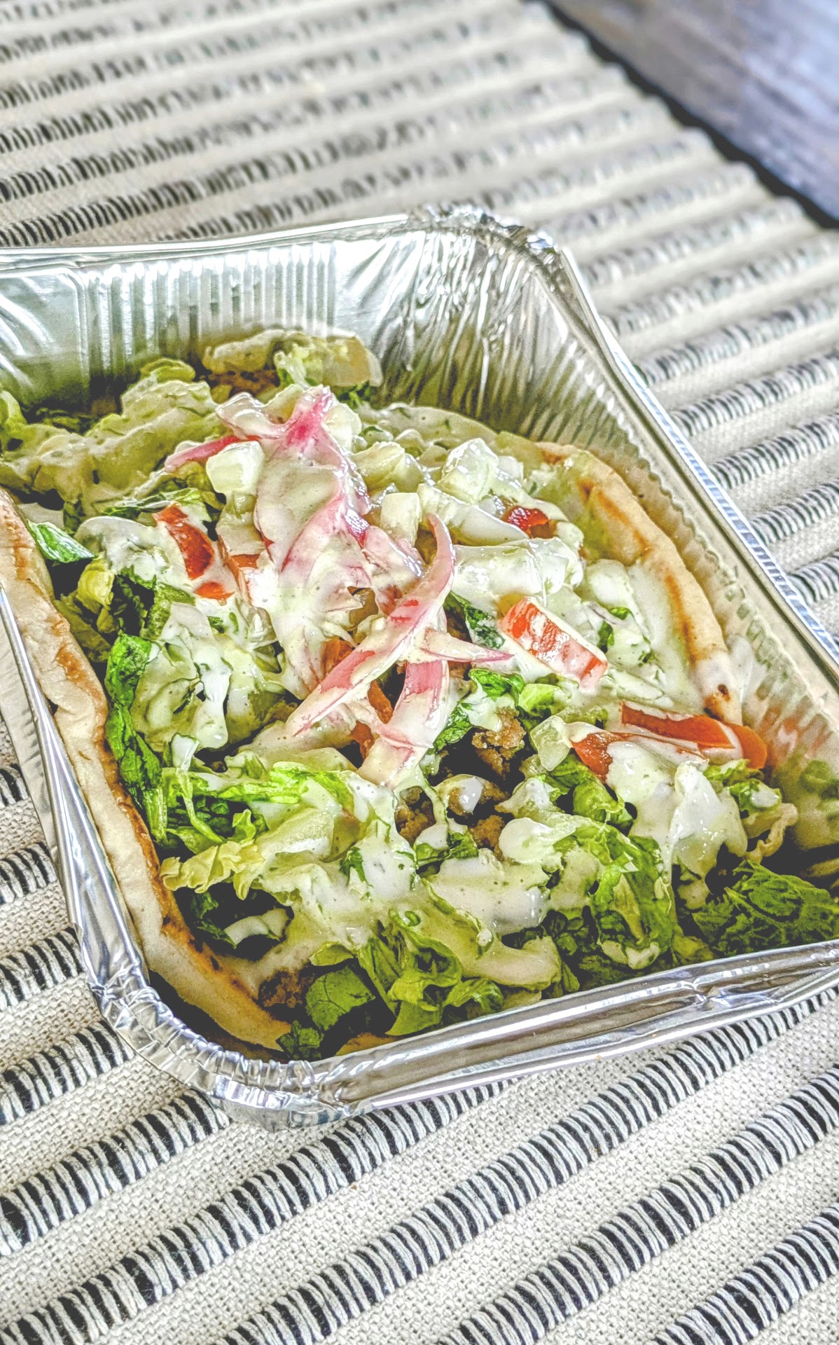 The beef gyro is a standout, featuring perfectly seasoned, tender gyro meat nestled in a warm pita. Itās topped with fresh lettuce, onions, cucumbers, and tomatoes, which add a crisp, refreshing crunch. The combination of the creamy poblano ranch and the mild spicy green sauce brings a delightful balance of flavors.