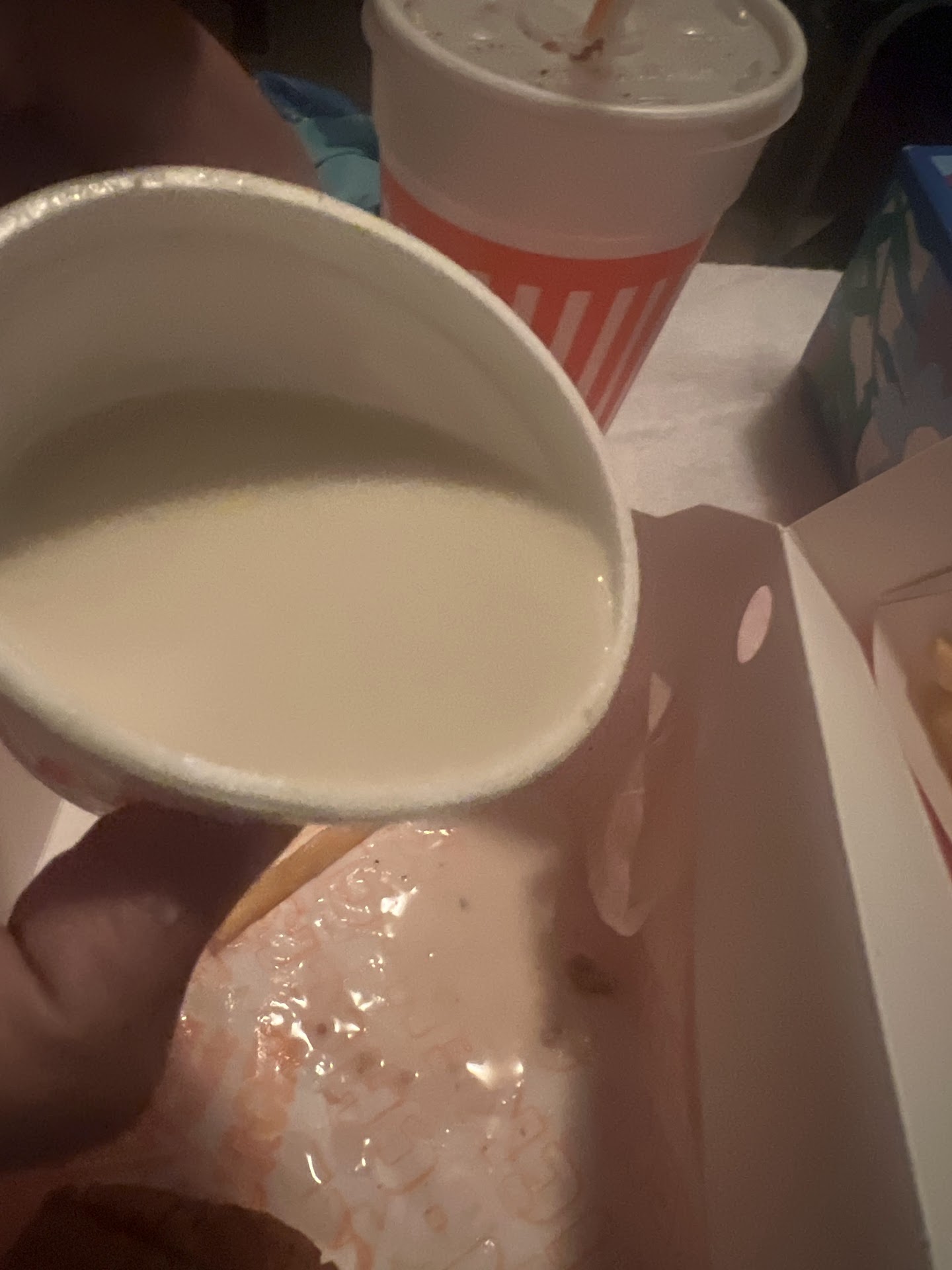 They don't give the EXTRAS so you pay for either so extra gravy or extra strips, make sure you check before leaving. The employees use this to keep for themselves. Again integrity and night time manager or supervisor needs to deal with this. I am not the only one it happens to. I called in the other day because I got home late again and decided to give this place a go after a few weeks so I did door dash that was $60 for my daughter, as well. We get the order Dasher was fast and very nice watching that dasher tracker lol excited for the order and starving we get into the food . My daughters burger watery from the lettuce so soggy bread and cold half filled fries. Then I look at my meal and what pissed me off was no extra gravy, BURNT STRIPS and yup gravy flavored murky water in that gravy cup.
