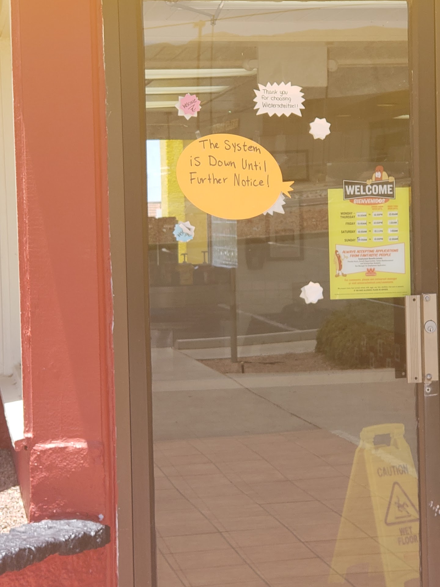Today was the worst experience I've ever had with a fast food restaurant twice in one day. Wienerschnitzel demonstrated the worst customer service I have ever seen. I went to 2 different Wienerschnitzel locations and each one failed to do their best to keep me as a customer. I will never return to Wienerschnitzel and will make it a point to tell everyone I know how bad this establishment is and how bad their customer service skills are. Here is what happened to me today. A friend of mine and I went to Wienerschnitzel for lunch today to the location on the westside. Wienerschnitzel was celebrating 58 year anniversary with 58 cent hotdogs. We pulled up to find this location closed because their system was down. I explained to the person who came to the door that I was paying cash and he insisted they could do nothing because the system was down. So we left very disappointed with the non-effort they made to try and accommodate us for lunch. So I went home with the intention of going to another location for dinner. I drove to a location in the northeast part of El Paso and got there at 7:30 with 4 cars ahead of me. By the time I got to the order window it was 8:05pm and they would not honor the special of 58 cent hotdogs. At this point I blew up. I tried to explain I was in line before 8:00 PM and they should honor the special, and i further explained they should have come to my car to explain i would not be able to get the special. That would have been the courteous thing to do but instead kept arguing with me about the special ending at 8:00 and not being able to honor the price. Needless to say i will never return to...