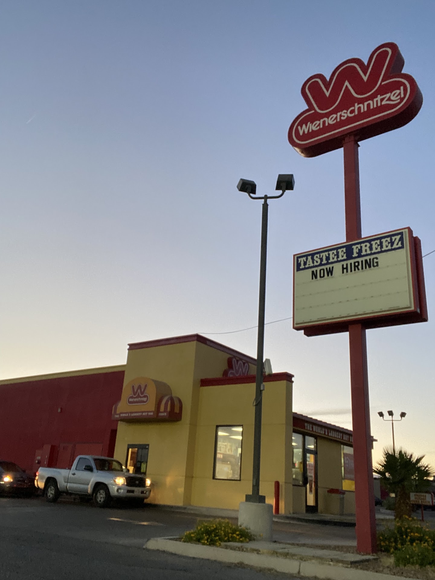 Wake up Wienerschnitzel! When one goes in at Prime hours at McDonald's Taco Bell Burger King etc., their lobbies are full. At Wienerschnitzel, you mostly see a half empty Lobby..... at best.