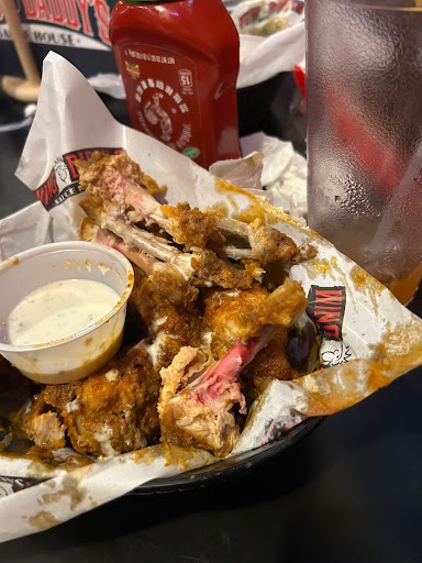 wing daddy's is one of my absolute favorites, usually worth the almost two hour drive for me. never have i ever had such an experience though! i am not one to complain, ever or leave a negative review but. . .we got there, waited almost 15-20 minutes just to put our drink order in. then waited 15-25 minutes for most of the drinks, 45 minutes for one bloody mary! thats a little over an hour in, we were seriously contemplating leaving money for our drinks & walking out. when we finally all had drinks, we placed our appetizers in. waited i cant even tell you how long, the queso came out cold! we sent it back. when we did, we all placed our order in, waited soooo long! of course in between we needed refills, little things, in all we had one server & her two helpers, all which were asked of things when they came to check on us. nobody delivered anything, they didnt communicate within themselves either. finally, our food comes out except for the kids ones. the wings were cold, as if they were quickly warmed up because the middle was super cold. we sent three orders back, still waiting on the kids meals & their ketchup, plus our buffalo shrimp appetizer came out after all of us were over it, ready to leave! when we sent the orders back, who we thought was the cook came out & apologized. seemed super sincere, we told him we didnt mean to be a pain but we came all this way & never have issues like this but we appreciated it. a little over half an hour passes, i ask to speak with management. the same man, i thought was the cook came out. i told him about everything from start to finish & he seemed very nonchalant. my family & i still contemplated just walking out as none of our food was touched but nooo, we asked for boxes. bussed our own tables & still went in to pay. the servers & manager/ cook just stood there from a distance clearly saw us, they were giggling & looking at my sister & i then proceeded to their standing around instead of checking us out. MIND YOU IT WAS DEAD THE ENTIRE VISIT THERE WAS MAYBE 6-8 TABLES INSIDE & 2 OUTSIDE. i dont think ill be returning to this...