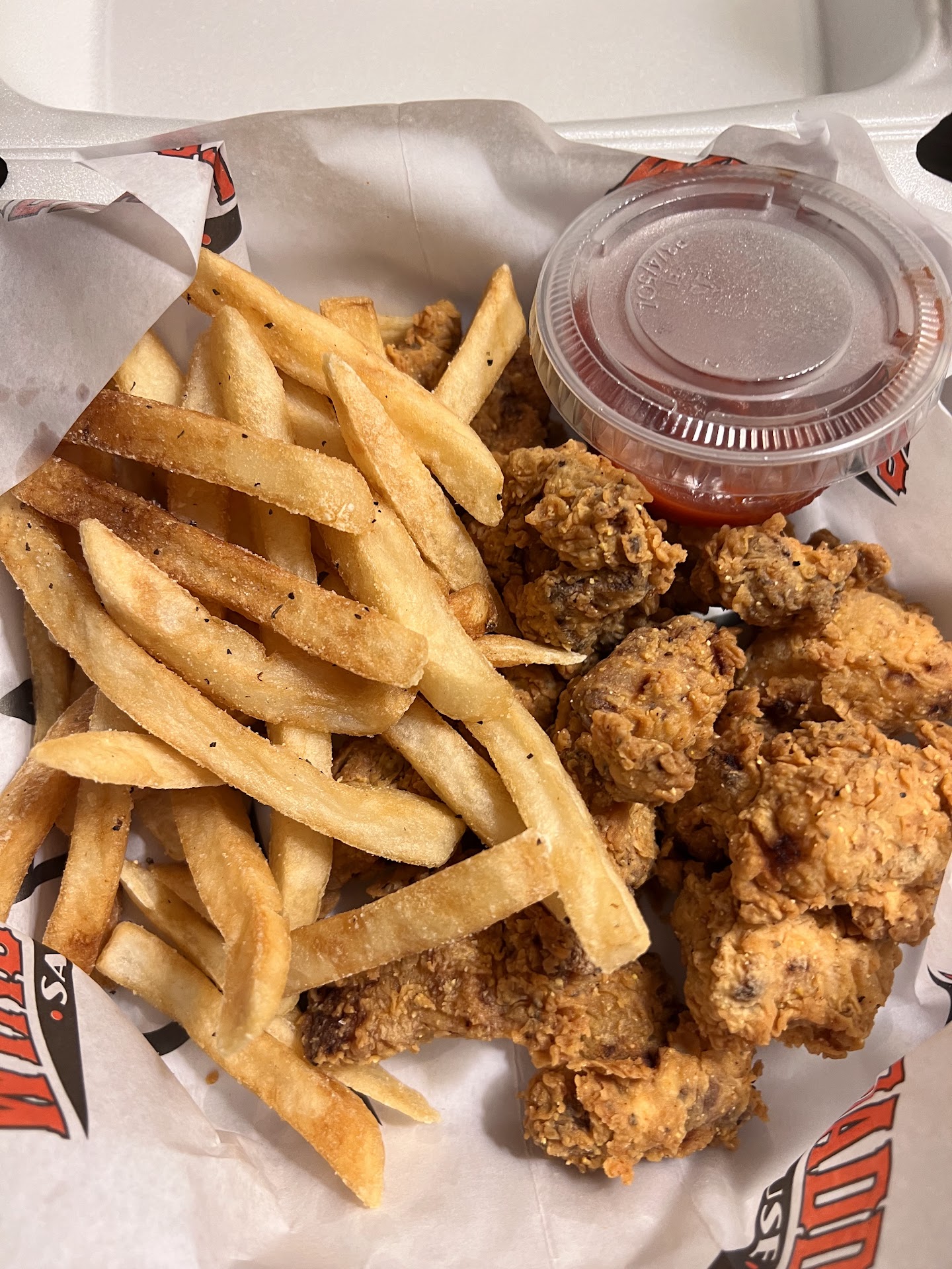 Food was great. Love the flavor of the sauces and wings are just made perfect saucy and crispy at the same time. You can ask them to fry them naked if you wish. We enjoyed our salt and vinegar fries, so much flavor on them. Love that you can taste samples of any of their sauces and they give you a few fries to do it. Service was great with our waitress, only ding was that we waited at the front door for a while before a hostess came around. We would for sure come back, wings are...