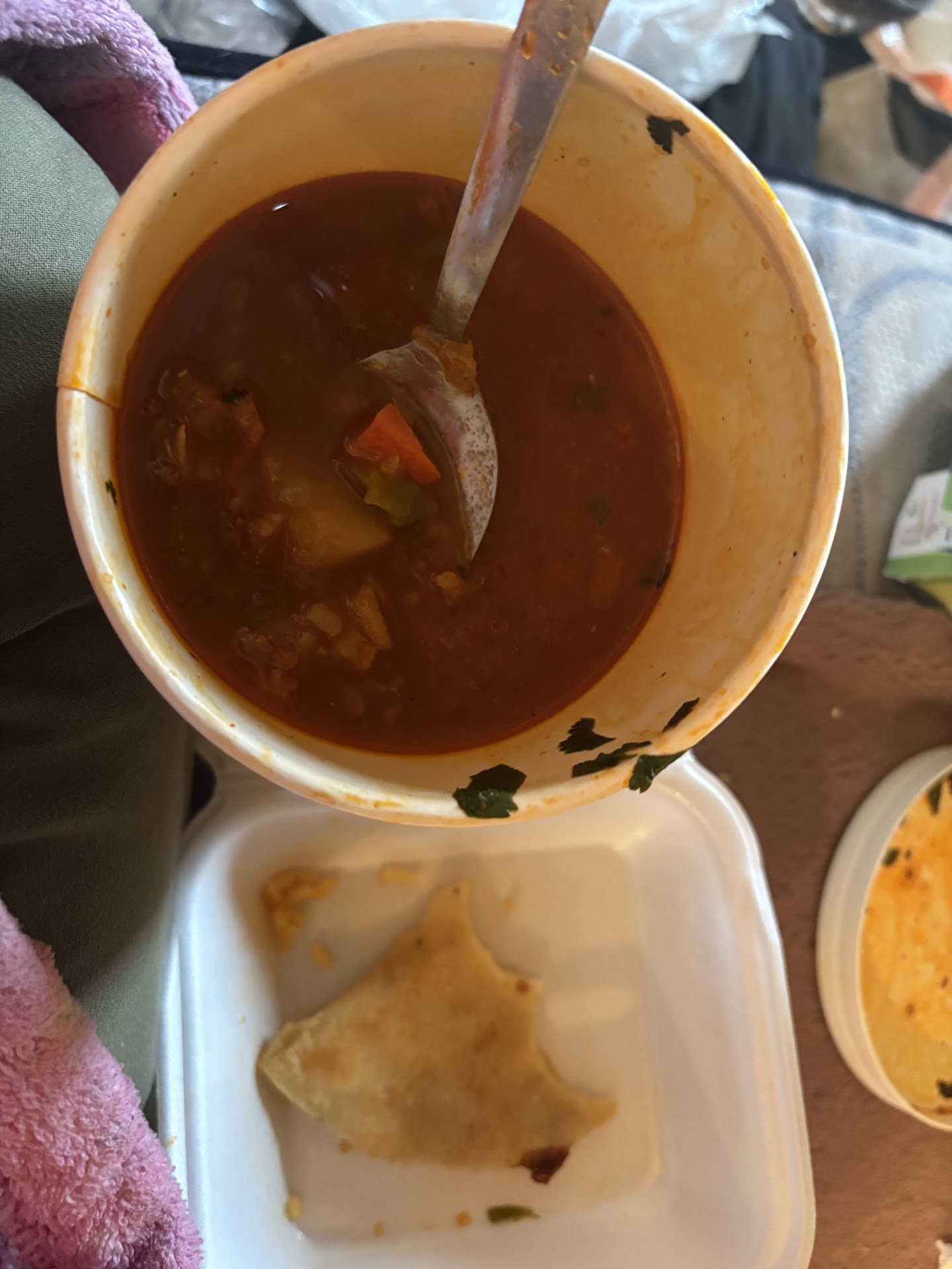 Read moreWe ordered through Door dash. First time ordering from here. Arrived eta 35-40 min pretty standard for when we order takeout. We got Albóndigas and Fiesta burger with one Horchata drink and a coffee. Albóndigas were a choice since I was sick and my throat needed something warm. I did not know it had chipotle pepper in it. Which was delicious. Not so good for my throat. Online the Albóndigas are a clear broth. Again didn't know it had chipotle pepper in it. It did have two quesadillas on the side we did not order that. I'm guessing when you buy the Albóndigas you can dip them in the broth. So that was so nice. We ordered to eat at home so we had spoons but our order didn't have any to go utensils or napkins. My husband's fiesta meal was good meat and fresh toppings. The bottom bread though was so soggy and it was pretty gross. Fries were ok they were so brown idk if it's the oil they used and soggy. Overall good flavor was there maybe because it was delivered it was so soggy. But I don't think it was worth 40dlls nor a place I would dash for again. I order often and there's other restaurants with...