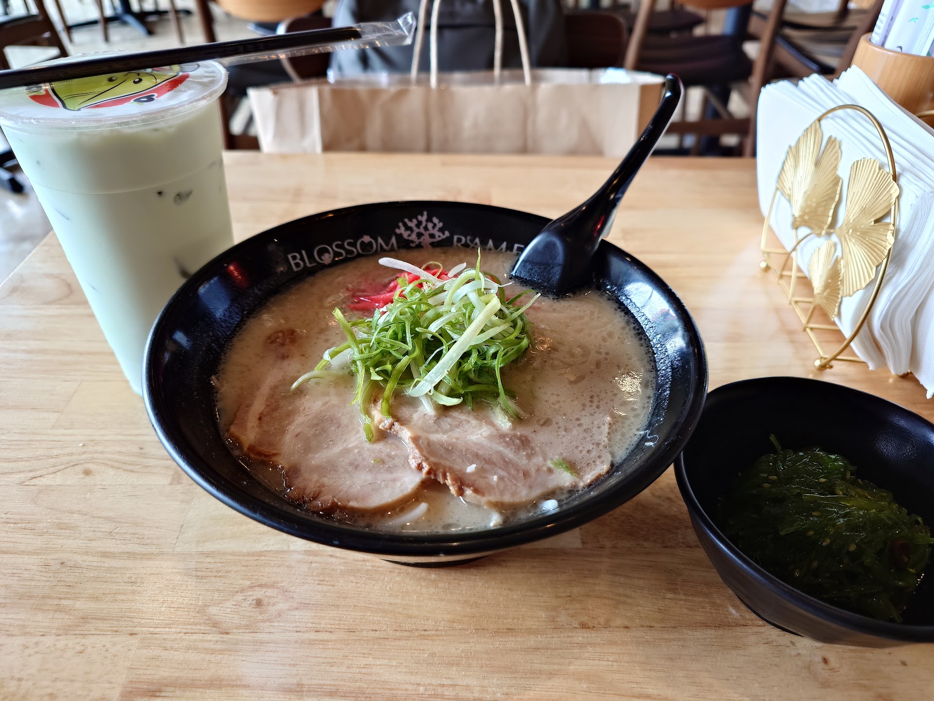Read moreAh, dear readers, join me on a culinary journey as I recount the exquisite experience of savoring a delightful bowl of Blossom Tonkatsu Ramen, accompanied by a refreshing seaweed salad and a savory matcha milk tea.