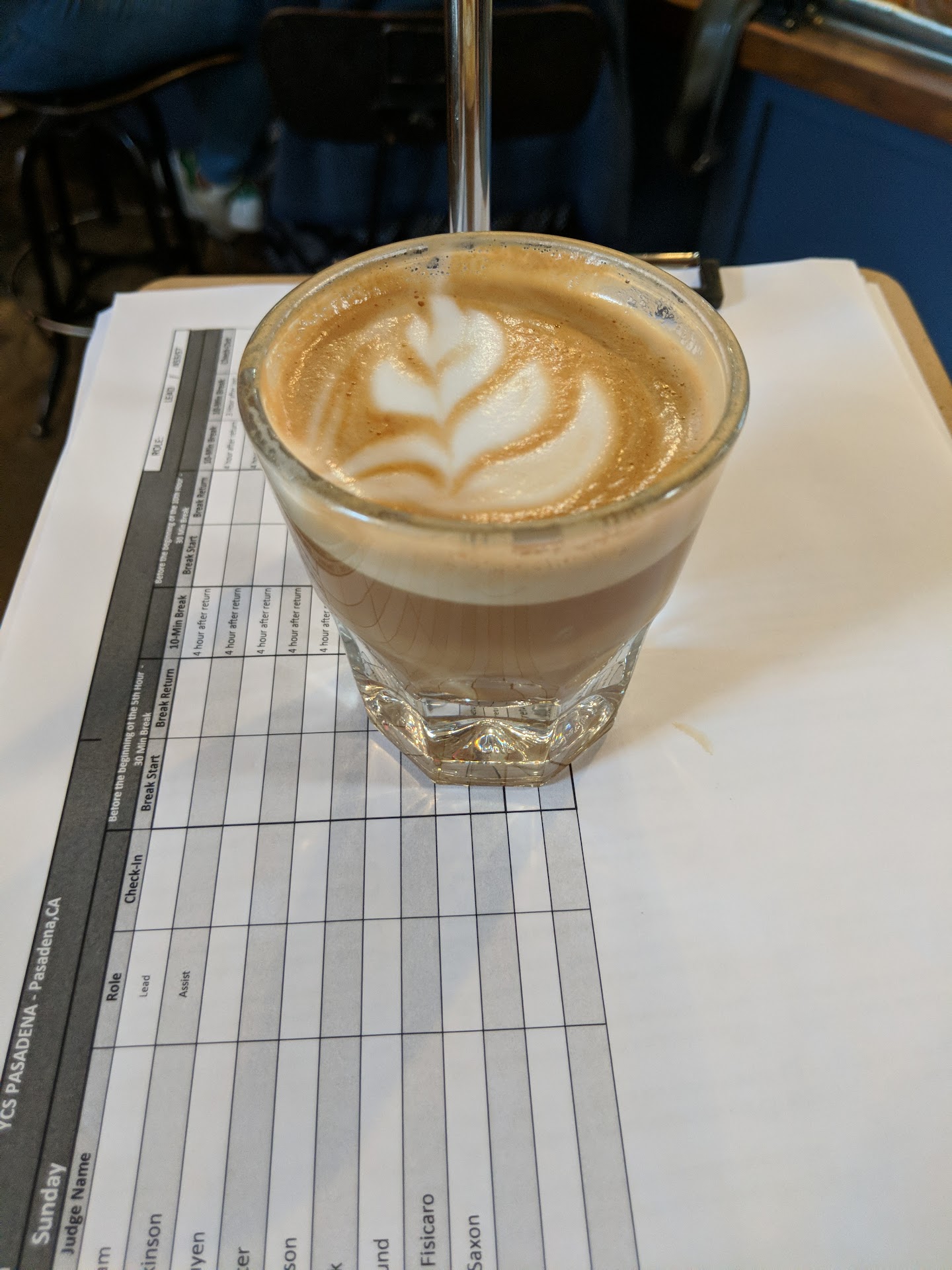 I didn't watch them make my drink, too busy trying to watch everything else in this bustling shop. The super quiet Malkhonig conical grinder spat out its dose. Each dose is carefully spun with a grounds distributor, and then tamped with a mechanical tamp. They've spared no expense to get all the variables of espresso in line.. I couldn't discern what milk was used, but when I received my drink I didn't care much...this was one of the top three cortados I've had anywhere.. The only improvement would be to give the coffee in the glass a quick stir before topping with milk...