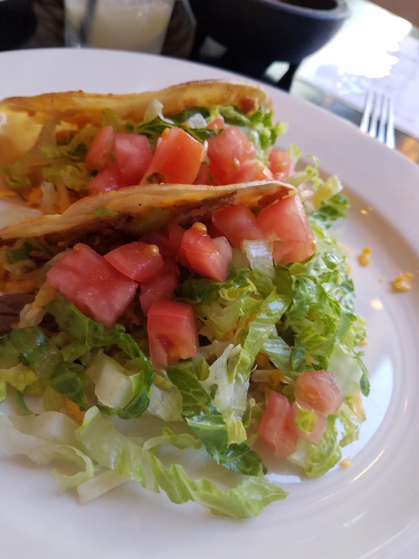 The tacos. The meat, savory, a little crunchy with some slight burnt ends. That's OK. Personally I wouldn't have any other way, it adds texture, and idk what kinda sauce they used on the tacos but it legit gave me some runny sniffles. It caught me WAY off guard lol