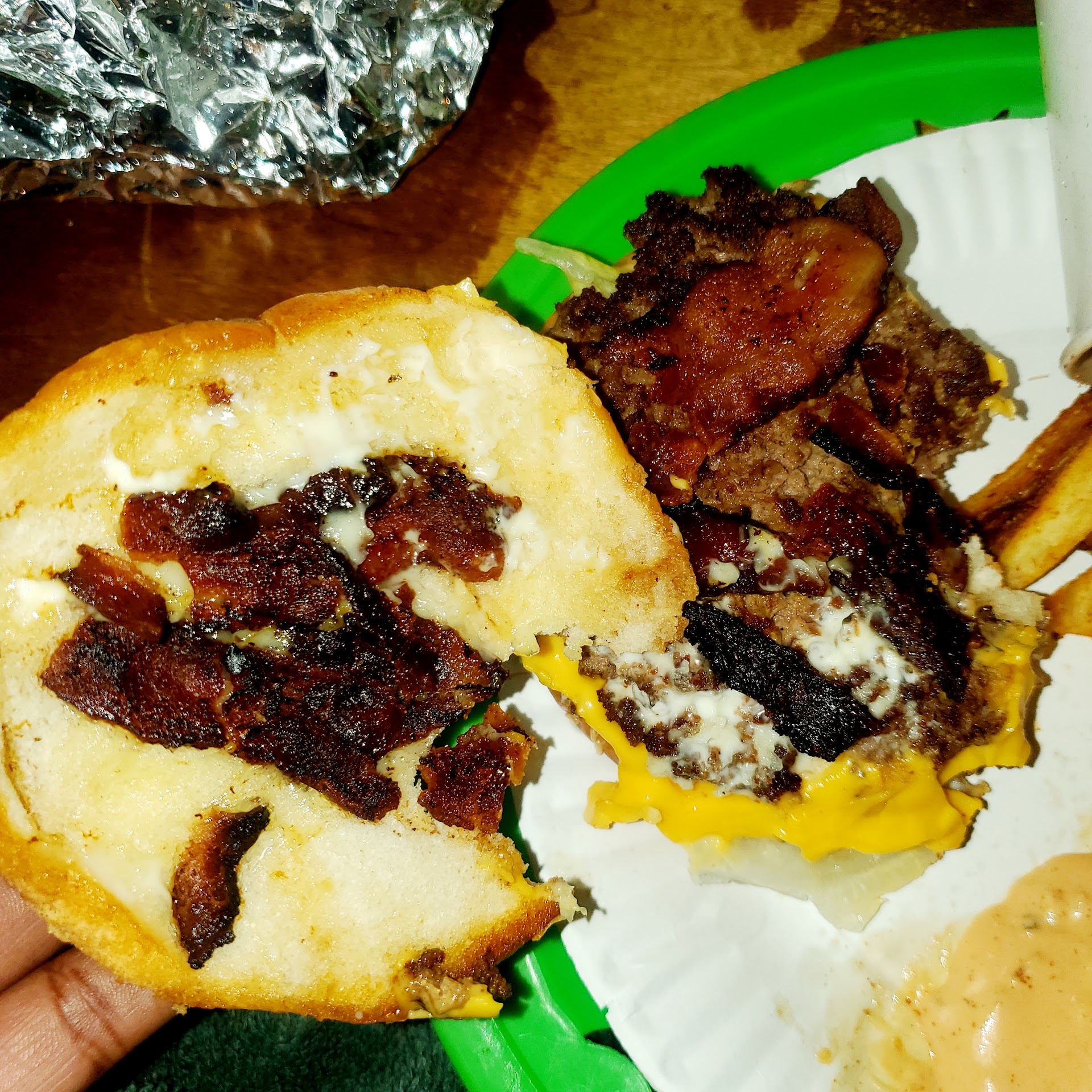Ā Ā Ā Read moreWhat can I say? You can't go wrong at Five Guys, easily one of the best burgers out there. Burgers are made to order with juicy Meat, good buns (although they can start to fall apart depending on toppings). Crispy bacon. You specify toppings when ordering so you get what you want. I go Bacon Cheeseburger, "All the Way" with Hot sauce and jalapenos.