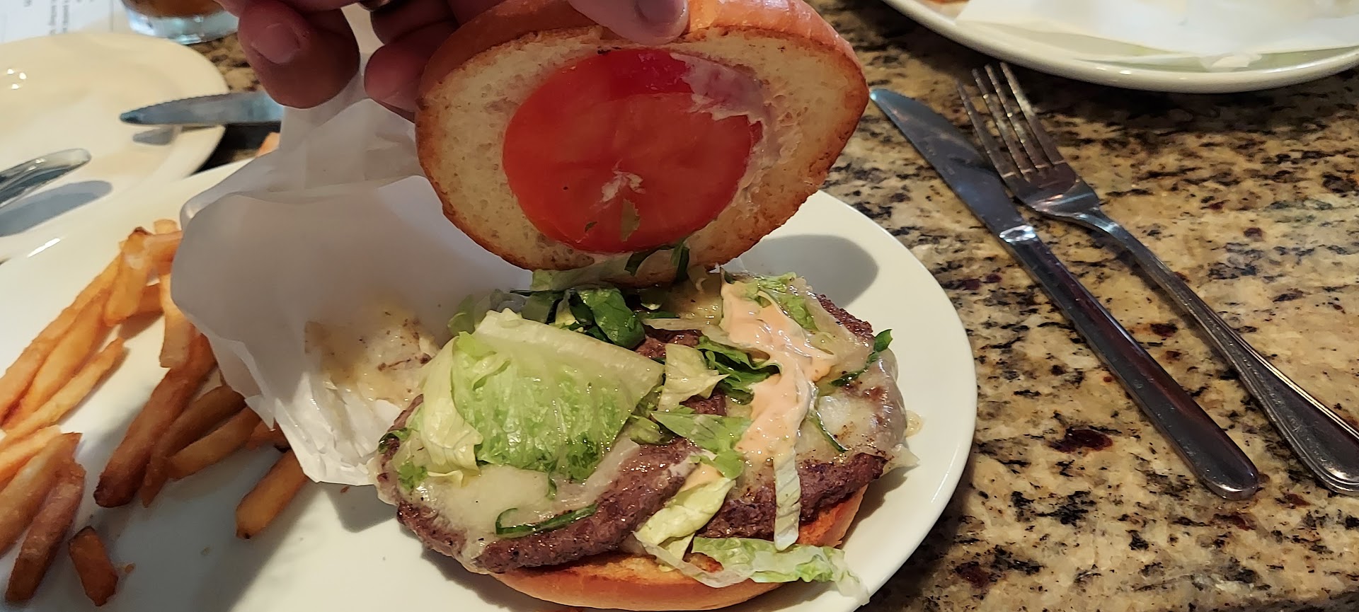 Read moreOnly okay place I expected more from the website reviews. I was disappointed because they don't serve breakfast all day and it didn't say so on the menu nor the website. Be that as it may I ordered a hamburger for $12.50. It came with a salad however the lettuce on the salad was room temperature and was delivered on the same plate as the hamburger. Consequently my burger sat while I ate my salad. The hamburger patty was small and it actually was thinner than the slice of onion that came with it. The meat was dry and tasteless probably because I ordered it medium rare and it came in medium well and sat. I will not order a hamburger again. I am anxious to try the eggs benedict for breakfast