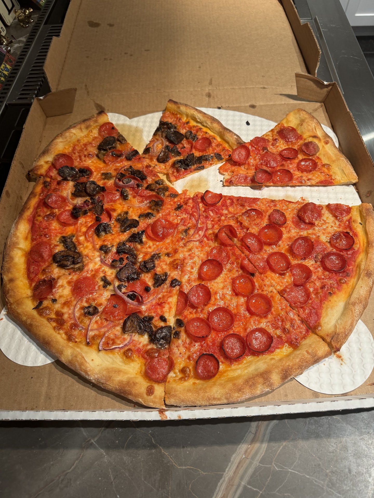 Their round pies nail that perfect balance - thin, foldable crust with just the right chew, quality sauce that doesn't overwhelm, and properly melted cheese. But the true standout for me is their Sicilian square pizza - crispy bottom, airy interior, and those perfect crispy cheese edges that any square pie enthusiast knows is the hallmark of excellence.
