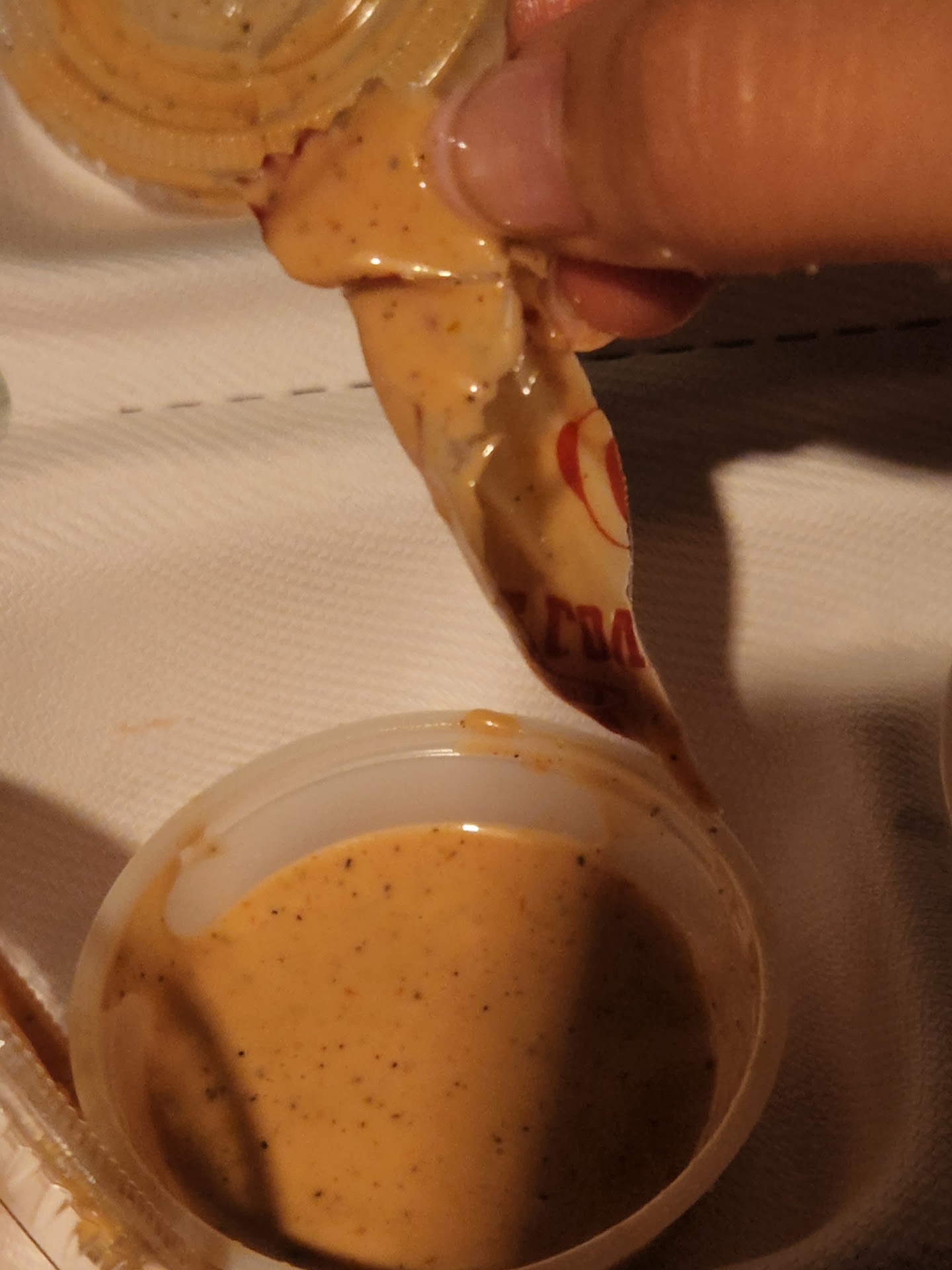 We get there at 12:15 because traffic, and the order still isn't ready. It's a big order, but it was over 15 min after the scheduled time. We talk to the guy at the front he says they are working on it, ok fine. Then we talk to, what seems like, the manager, and he says oh let me check and he hands us our drinks (this is an order for 10 people so it's a lot of drinks). My coworker takes them to her car, and then I get handed the food away from the counter, so can't check on anything, then we go back to ask for extra sauces because we don't see them, same guy tells us they are in the boxes (he didn't pack them so how would he know).