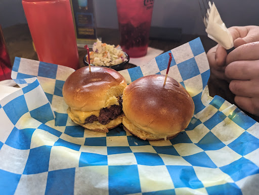 Read moreDecided to finally check it out & give it a try. The place is clean & is brightly colored. We were greeted & seated right away. We looked over the menu for a bit since it was our first time there. As mentioned in their socials, everything is a la cart. It's a fairly limited menu. The server was very helpful in answering questions and explained that they suggest ordering 2-4 items per person to get your fill. They do have a few $10 meal deals on the menu & we realized if we waited 5 more minutes, those same deals were their "lightning round" deals for that day. Instead of $10, they would only be $5 and included fries & a drink. We don't drink pop or beer, but it was still cheaper to go that route. One of us got the 2 classic sliders with fries & then the other opted for the grilled chicken strips & fries. The food arrived quickly. Now, I have a small appetite & it doesn't take much to fill me. I will gladly order off of the kids' menu at restaurants if I'm able to, or sometimes an appetizer section. What arrived definitely looked like a kids' meal. Again, we were ok with it. If I had been there with my hubby, we would've spent a small fortune to make an entree to his filling and he's not a big guy. The sliders were good & so were the waffle fries. The grilled chicken tenders were very greasy for grilled chicken & they were just 3 tiny slices of chicken breast, like what you would get on top of a salad. So, all in all, what we had was ok, especially for the price. I can't say I'd be happy spending more if it weren't on special. I wouldn't recommend for those of you with large appetites. We also felt the dessert options were pricey.