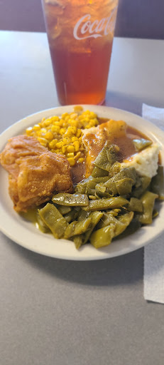 Food gets a 1/5 stars due to it being very bland. The fried chicken visibly has pepper in the breading, but doesn't taste it, and definitely doesn't have garlic or onion powder, paprika, anything that would enhance the flavor of the chicken. The green beans, lima beans, and cabbage all relied on incorporated meat to flavor them - not terrible, just terribly bland. The mashed potatoes are either boxed, or are seasoned to taste boxed. The Sister Schubert's frozen rolls were good though, that's the brand I always buy 😂. Salad bar was fine, just basic bagged salad mix with generic toppings. I did get a nice mouthful of the former stem attachment of a tomato that made it's way to the salad bar.