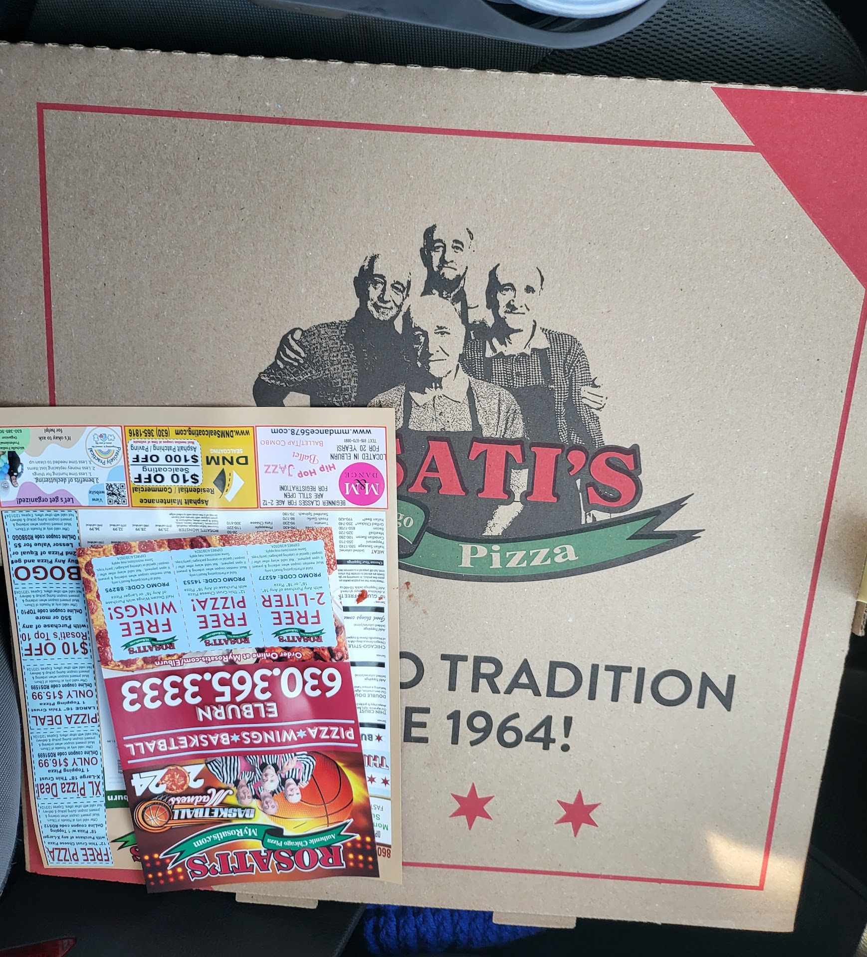 I like my local Rosatis a lot but I have never been to this location so I thought I would give it a try. They have a deal where you get two slices for $7. I wanted pepperoni but they only had one slice in their pizza rack so I asked if any fresh pepperoni was coming up and was bluntly told "no". So I got one slice of sausage and one slice of cheese, and asked for some parmesan cheese. The slice of sausage pizza was so old and hard it had probably been sitting for a couple hours, the cheese along the edge was hard as a rock and where the sauce was showing it was brown and hard, old. The slice of cheese was marginally better but was still old with hardened cheese. Not to mention it tasted bad, not like good fresh pizza. Also, I was given red pepper flakes instead of parmesan like I asked for. And to top it off the young girl that rang me up and grabbed the pizza for me had a rude demeanor, like she didnt want to be there. Poor customer service and poor pizza gets a poor rating, I should have ate...