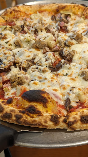 The restaurant lacks charm. It is rather austere inside. So, if you are looking for a fancy place to have a European meal, this is not the place. HOWEVER, the food and people more than make up for the lack of atmosphere. The staff were friendly and helpful. Mr. Dom was hard at work at the wood fired brick oven. He offered a very friendly greeting while we worked his magic with the pizzas and other oven baked dishes. We took time to look at the market before ordering our food. There are lots of interesting items from around Europe. My daughter, who is learning a lot about and trying her hand at authentic Italian cooking, was amazed at some of the prices. I am sure she will be shopping there in the future for her specialty cheeses, meats and pastas.