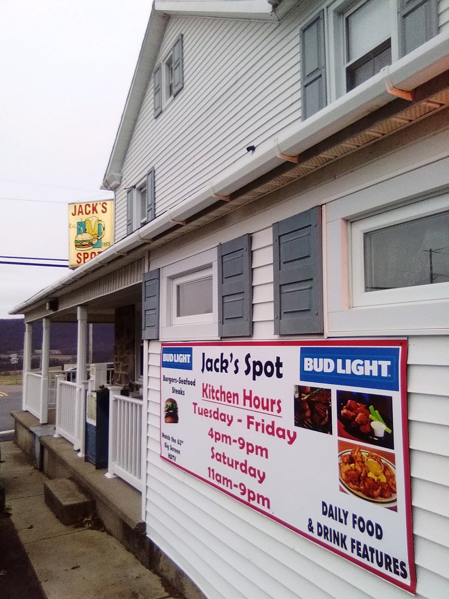 Read moreThis is a great hidden gem. Out in basically the middle of nowhere, Jack's Spot is a fun place to spend an evening. The food is delicious (especially the wings) and the drinks are cold. Different specials on both the food and drink menu every week keep things fresh. Hanging out in the yard is great! There are picnic tables to eat at as well as cornhole boards and propane fire pits to sit at as you drink and watch the beautiful Pitman, PA sunset. They even have live music and karaoke out in the yard on occasion. Inside there is a dart board, pool table and multiple TVs to watch whatever game may be on at the time. Definitely a great place to go with a few friends and have...