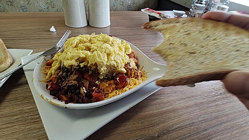I quickly had a drink order in and a menu in front of me. As I typically do, I ended up ordering a skillet - I think the title was Ay Caramba, or something (it was a Mexican Skillet with chorizo). The servers were really nice and with my order placed, I sat back with some reddit on my phone to enjoy my morning.