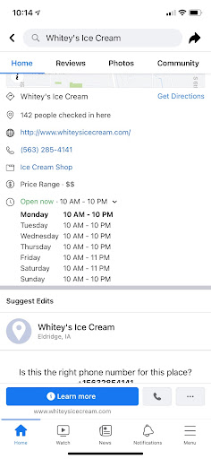 Read moreThis Whitey's has the worst, slowest service I've ever seen. Went on a Saturday night at 8:30, probably the busiest time of the week, and there were only 5 people staffed out front! The Davenport/Bettendorf Whitey's normally have at least 8-10 staffed during busy times. Got to the counter and it took 5 to 7 minutes of staff dealing with the drive thru and other orders before they even LOOKED in our direction. Never happens at a Whitey's. All in all it took 25 minutes from the time we walked in the door to the time we were eating ice cream. The ice cream is good, but I feel like Whitey's is a bit overrated in general, feels like a cult following more than anything. They were voted best ice cream in the WORLD last year? Give me a break. Cold Stone/Smooth both have creamier, better...