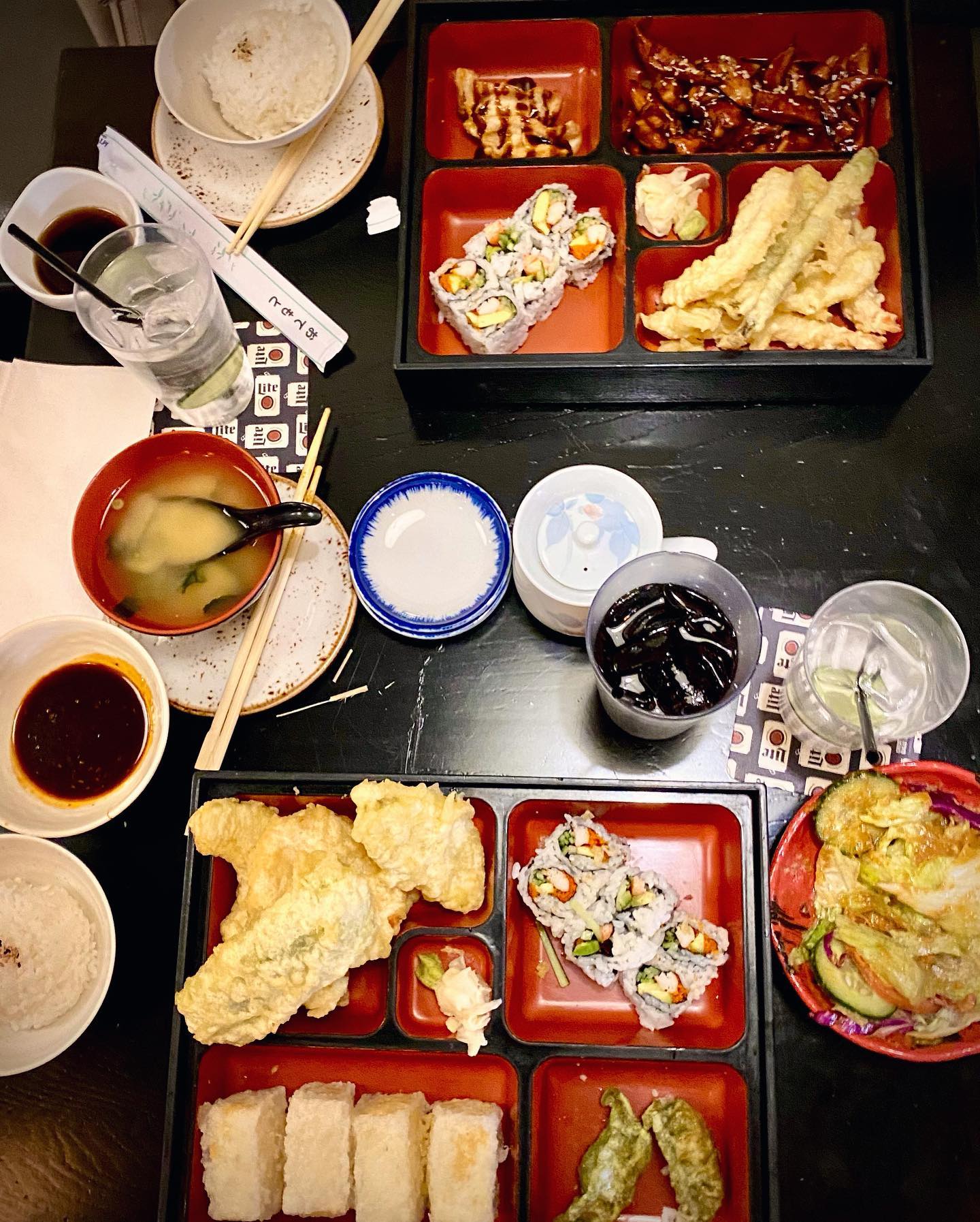 Our waitress was very sweet, attentive. We ordered bento boxes and I asked for a tofu substitution- this was my first time ordering Japanese food/sushi since becoming (mainly) vegan. Not only did our waitress and the chef accommodate me, they went above and beyond checking with me for each aspect of the box that had meat in it (I had forgotten how much meat was included, and was pretty embarrassed that I had ordered something that basically had to be made into a new dish). They did not mind at all, and the food was incredible.