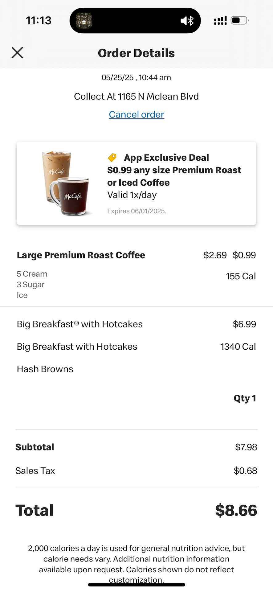 Once at the window, I asked the employee to add an iced coffee to my order. When it was time to pay, it seemed like my code wasn’t working, so the employee asked me to wait a minute while the manager or the person in charge came. By that point, I had already been in the drive-thru for about 10 minutes. After the manager helped with my order, I was told to move to the next window.