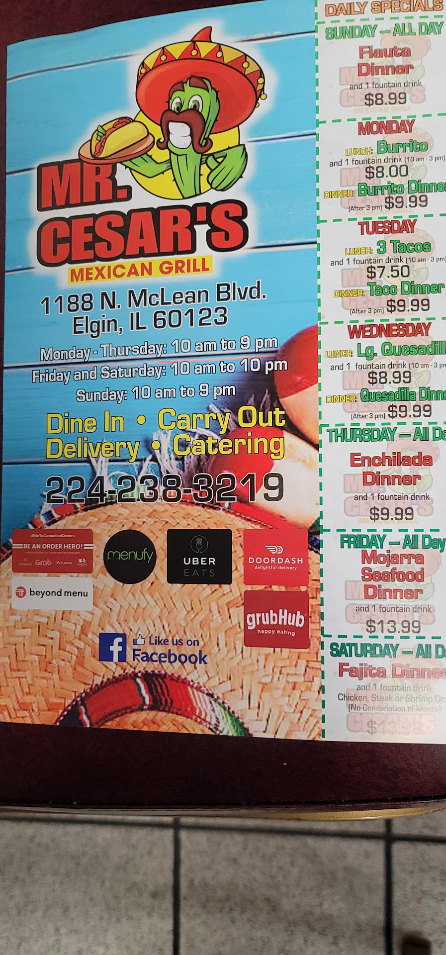 The food at Mr. Cesar’s is exceptional!!! I haven’t had Mexican food this good in a very long time! Everything is made with care, and the flavor - omg. I’m honestly excited to go in person at some point. I’m also glad my delivery went smoothly this time. The menu is great!! ——————————————— (Original review)