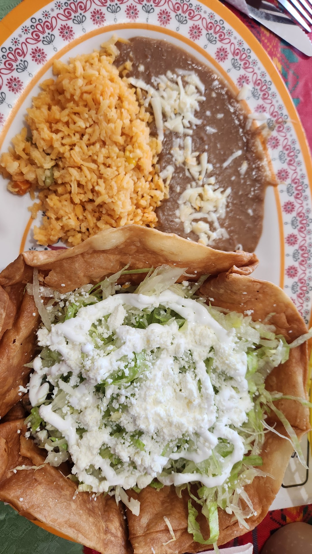 Stopped randomly and could not be happier with our choice to stop here. The outside was very deceiving, but followed the reviews and stopped anyways, TOTALLY WORTH THE STOP! Food was absolutely delicious. Started off with a complimentary bowl of this bean soup (no clue how to pronounce or attempt to spell the actual name of it), which was beyond phenomenal!!! I could have eaten 20 of those bowls and been completely satisfied. I very much enjoyed the taco salad with rice and beans. The shell was cooked so perfectly, fluffy and airy. The insides had just the right ratio of meat to toppings. The beans were so flavorful. The rice was cooked to perfection! I will definitely be returning! My sister enjoyed the steak taco dinner and actually ate the entire meal, which she never does!! Shout out to the cook who came out to ask how the food was, great conversation. He has found his true calling! Don't skip this place over! You wont...