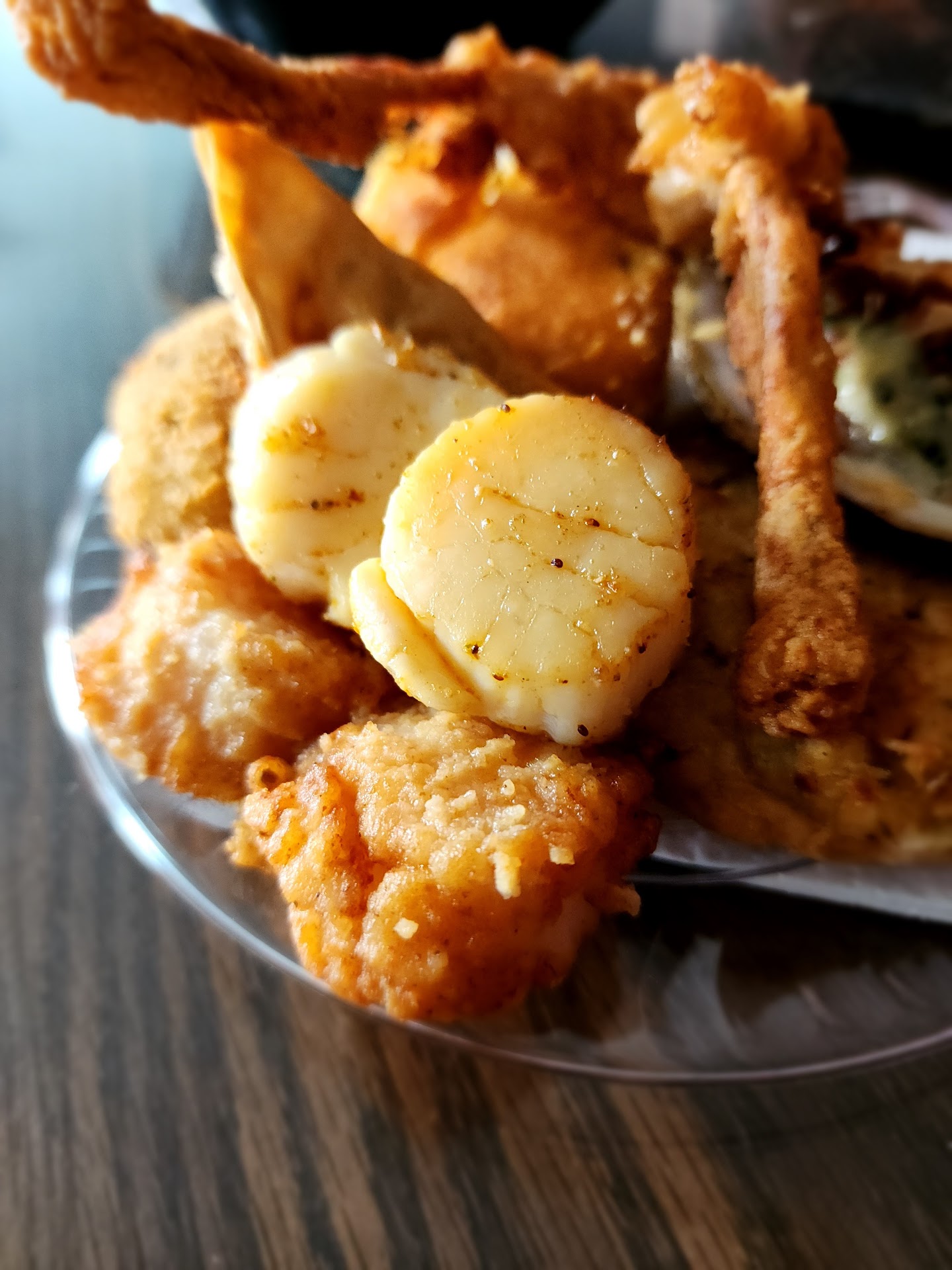 Scallops, these were served both fried and broiled. For me, scallops are always an easy go to but the seasonings on these were top notch. š.