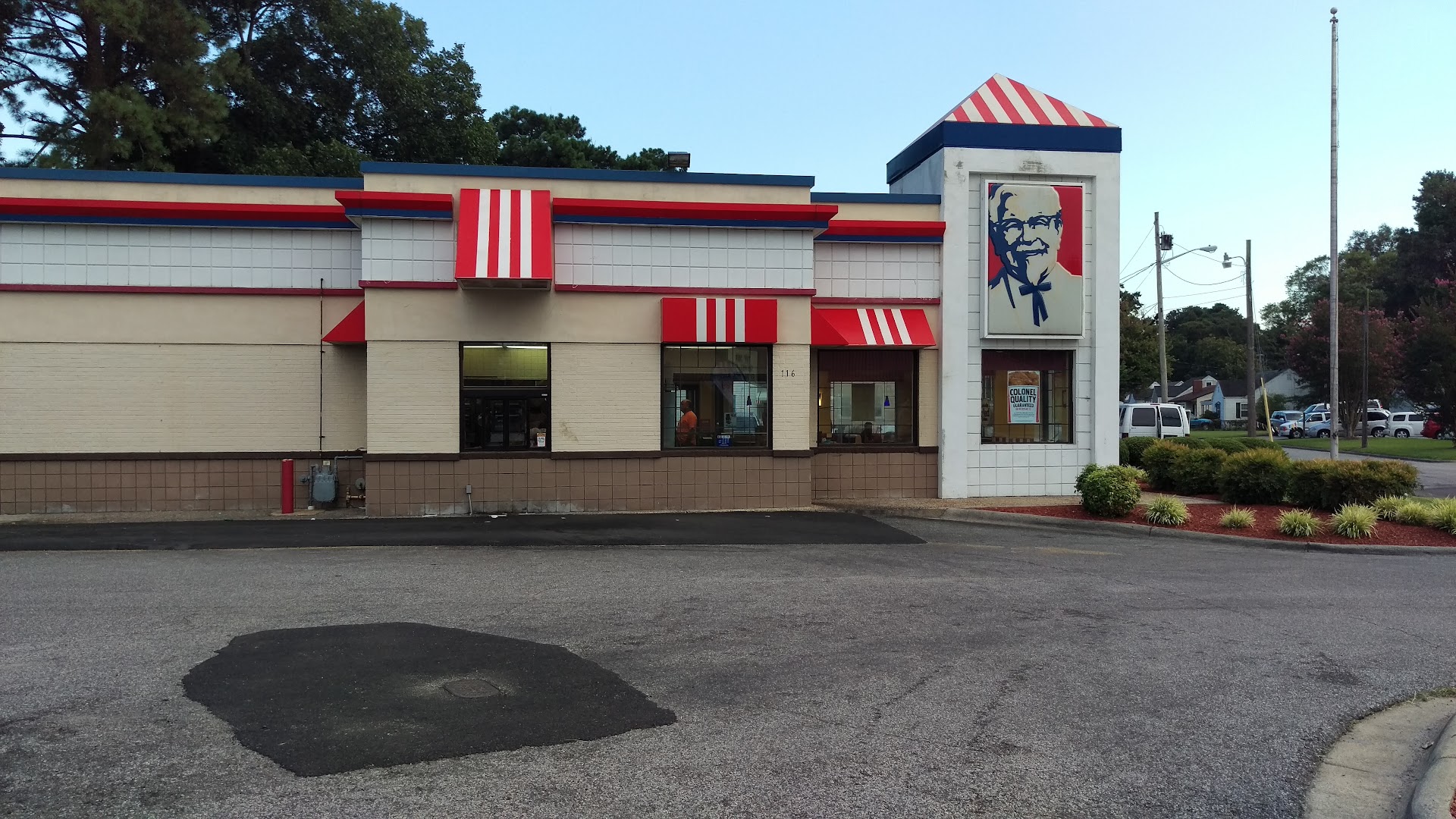 I am giving this KFC a 4 star because everyone makes mistakes and I have had years of good quality food here. I ordered the $6 box in the drive through lane with 2 pieces of Crispy Chicken and what I got when I opened the box a couple miles down the road was dark brown soggy, dripping greasy chicken. I turned around and went back through the line and they exchanged it with the same condition of chicken, I do wish I had taken pictures but "Crispy" and "Greasy soft" are on opposite sides of the spectrum. I then turned around again and walked inside the establishment and the Manager was shown the napkin that I squeezed the chicken with was totally greased and dripping. I asked him to give me the "Pot Pie" instead of chicken and it was very good, when I got home 30 minutes away but I was hungry when I ordered my late lunch. When I came in personally some of the employees I perceived had the "what is it this time" look. As I left the inner vestibule door closer is bad and smacked my arm and took a small hunk of skin to add more drama to the whole KFC experience. I wrote to KFC.com using my receipt and got NO REPLY so I am letting everyone know at this point, do a spot inspection and flip your chicken over...