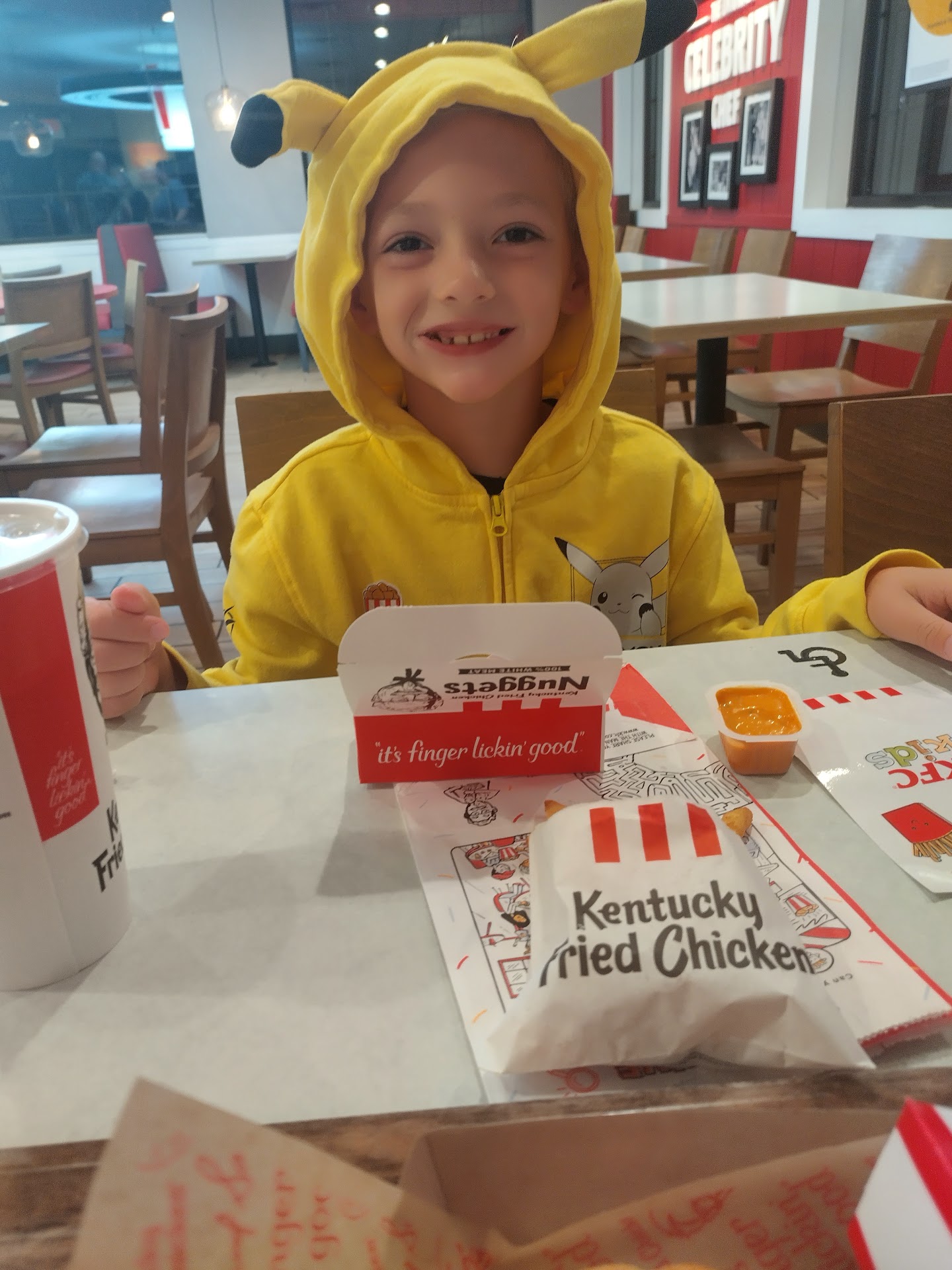 Read moreOverall good experience. I looked on the mobile app while we were on our way and it had an offer for an 8 piece bucket with a choice of 3 sides (Side Lovers Meal). Since we arrived before I had the chance to place the mobile order I went inside to order (drive thru was packed).