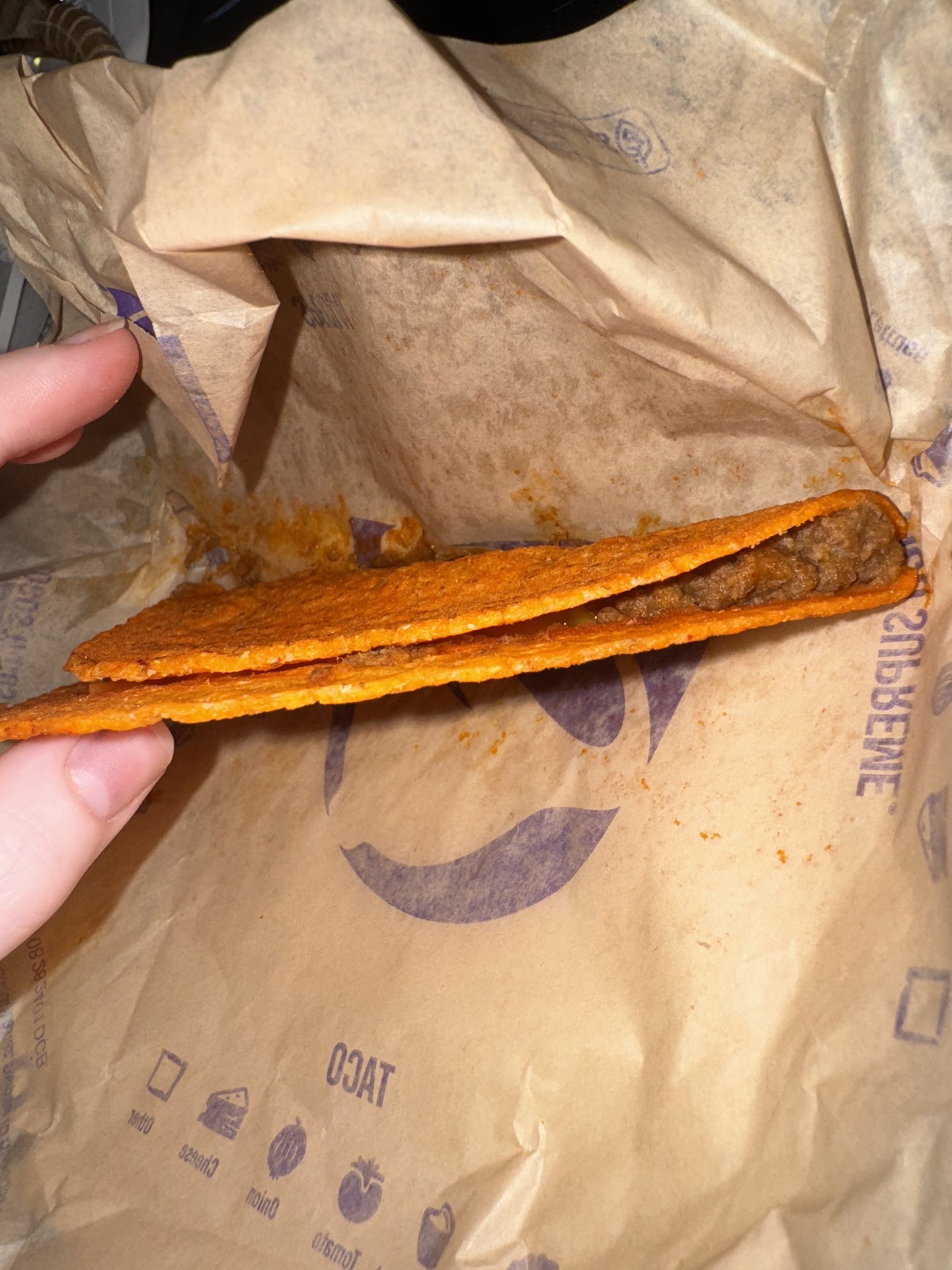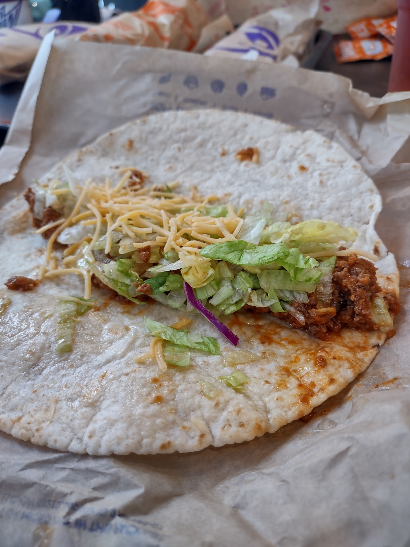 Read moreGot a nachos bell grande, a cinnamon twist, two Dorito tacos and five cheese rolls. Barely any meat, cheese and sour cream on the nachos bell grande like there was barely any work put into it. The cinnamon twist had barely anything in the bag and the Dorito tacos had some weird cheese on it like nacho cheese or something? And then just the cheese rolls had barely anything cheese in them. They put hardly any work into the food and the Taco Bell by Walmart is by far better. Also the cinnamon twist TASTE LIKE PAINT. DO NOT GET THE CINNAMON TWIST FROM HERE ALWAYS TASTE LIKE PAINT OR DISH SOAP. AND THE CHEESE ROLLS HAVE...
