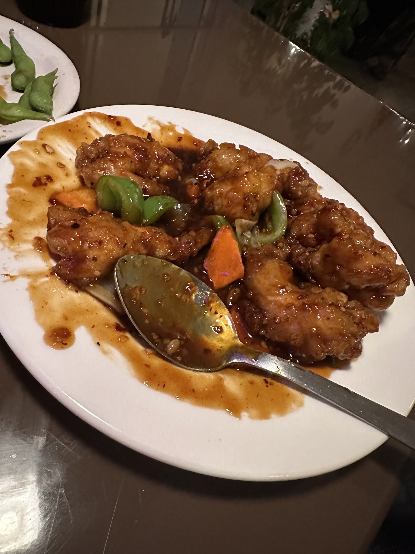 Not much longer later she brought me a plate filled with breaded chicken in orange sauce, fried rice and an eggroll on the side. And it was delicious.