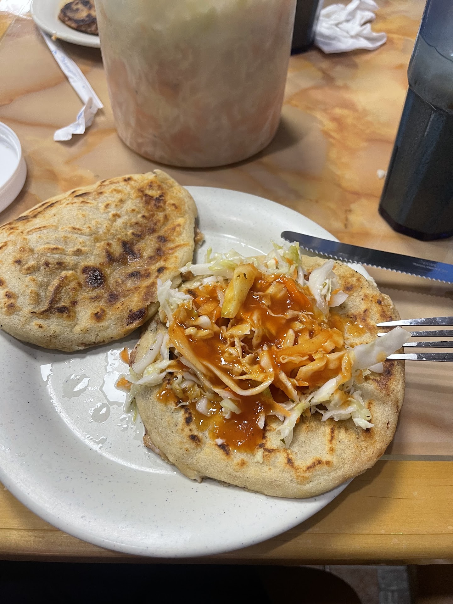 Read moreFood was beyond delicious and reasonable. The server was great. The place was emaculate. The coffee was freshly made. The food as well. Made to order not all ready made ahead of time for customers. I had a typical breakfast. Tortillas scramble eggs with onion tomatoes and green peppers, yellow plantains, crema, cheese avacado. Very delicious. We had a valeada with egg, been and cheese. The valeada tasted like they made right in front of you. And of course we order pupusas. The best I had in a long time. He ordered revueltas and loroco. The lorocontasted fresh and am sure it had to be made from frozen loroco but could not even tell. The revueltas when i cut through the cheese was niece and googuie. Just how I like it. The place is on the 1st floor. It was very easy for the wheel on the baby carriage. Parking is on the street. It was 4 of us, and we paid 48$. But we only drank coffee. 100%...