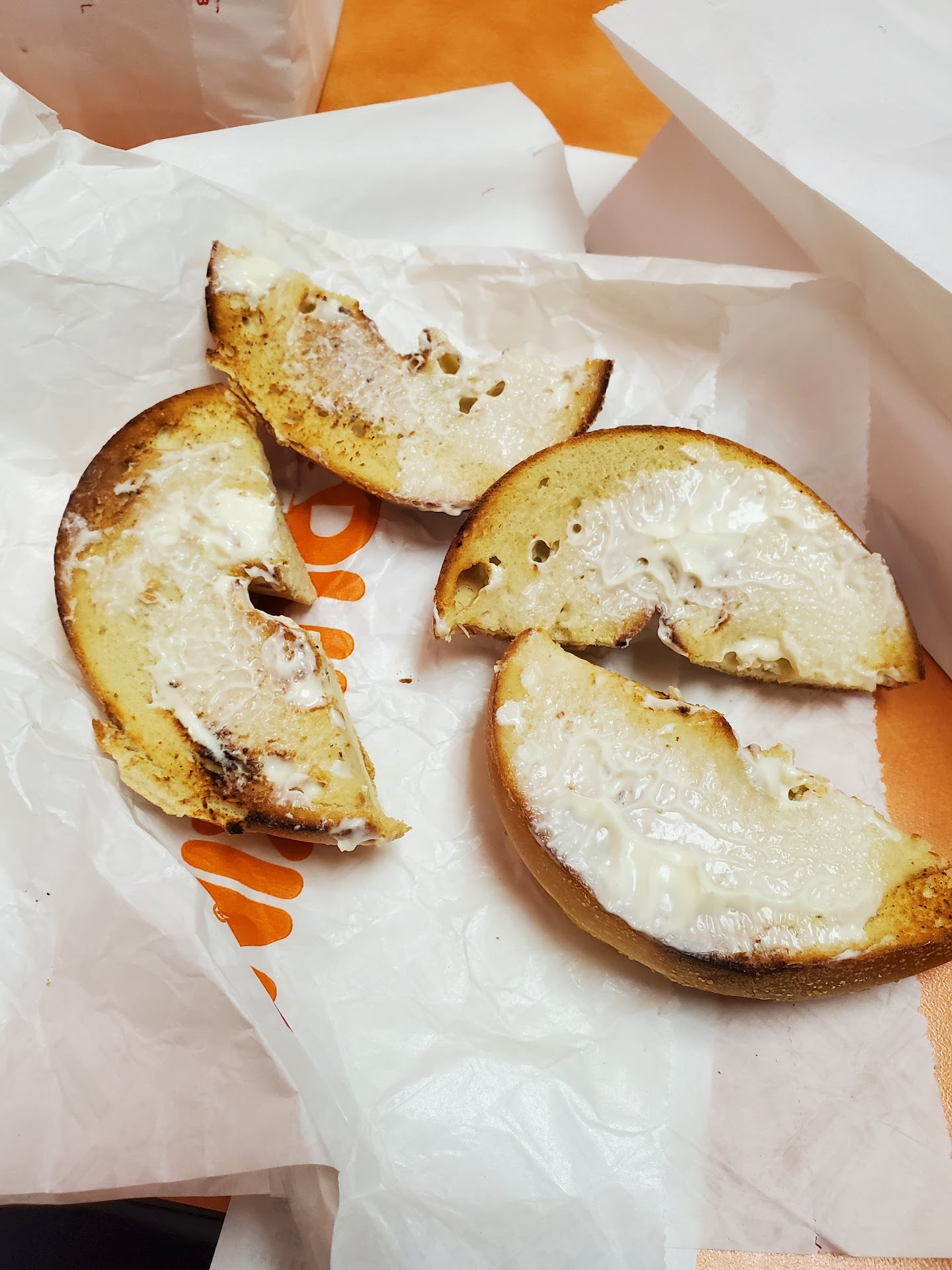 This same guy made my bagel and cream cheese, but there was barely any cream cheese. It's a complete rip off. It's as if they're cutting corners on the cream cheese. I'll send a picture.