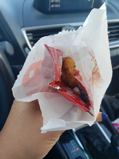 After spending 20 minutes in the drive thru, I asked for ketchup for my hash browns and the person hands me a little bag w ketchup in it. I assumed there were a few packets and went on my way. As soon as I pull out of the lot, i go to grab a packet and felt ketchup on my hand. When I looked inside I find 3 OPENED ketchup packets and a hasbrown (see photo). I was absolutely DISGUSTED. I made the u-turn and went inside to bring this to the attention of the manager. Turns out, it was the manager who handed me the opened ketchup packets.