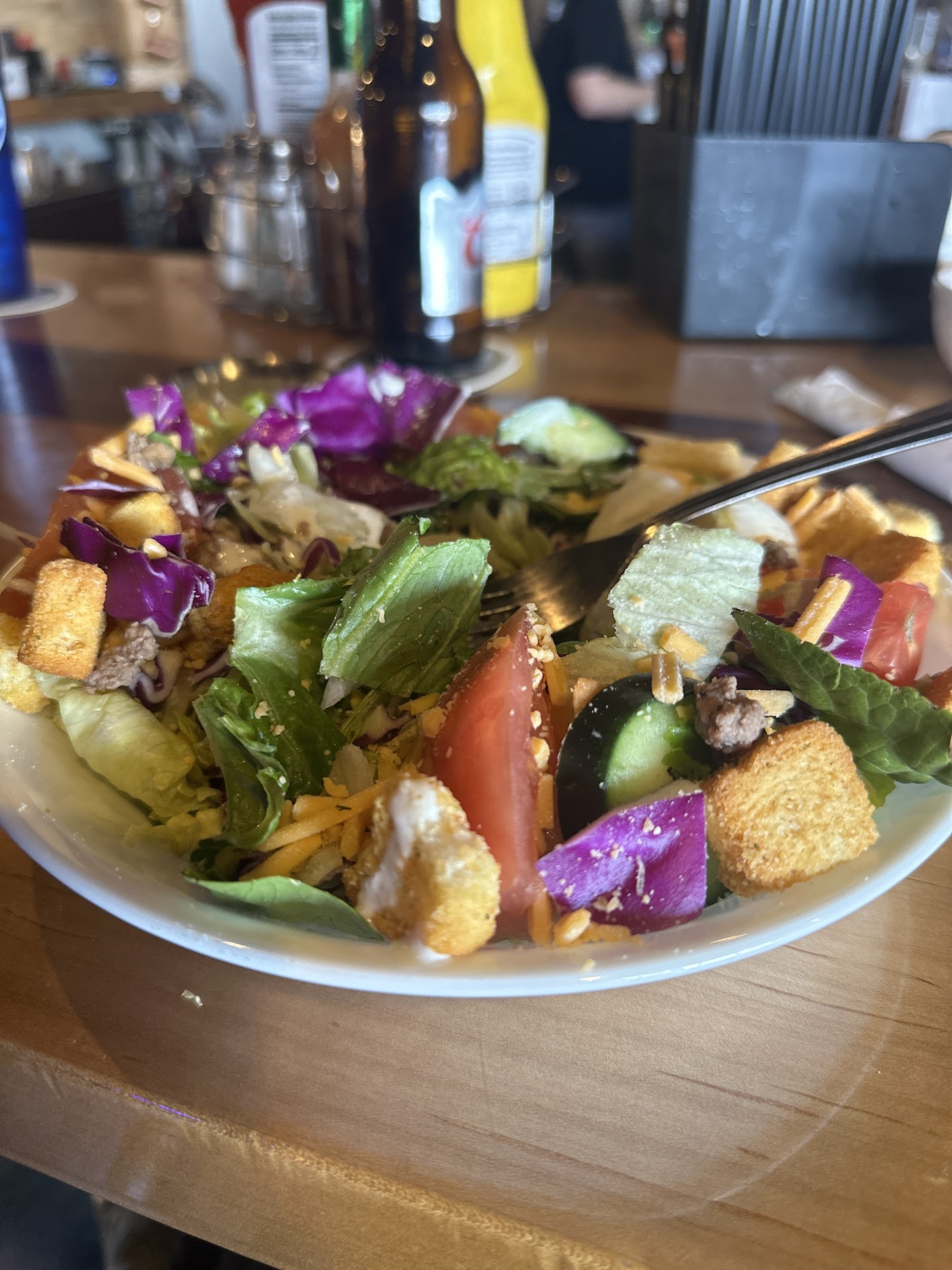 Read moreWas so excited to try the new restaurant part of this as the previous locations had subpar food and this was also the same. Came in for a beer, salad and hamburger during happy hour on a Friday. Beer is supposed to be $1 off and we never got that discount. The beer is also flat as ever (the Co2 has always had issues here and it’s no different).There’s absolutely no bubbles in it (coors light) I ordered an Elizabeth salad that is supposed to have beef tips on it. It came with no meat at all. When I asked if I had ordered the wrong thing she stated I hadn’t and would ask the kitchen for the meat. Instead of beef tips I received a cut up hamburger. Not the same thing as beef tips. Fries we received were so salty we couldn’t eat them. I’ve heard good reviews so pretty disappointed we saw no difference from prior bars here at same location.Would definitely give it another chance but don’t order...