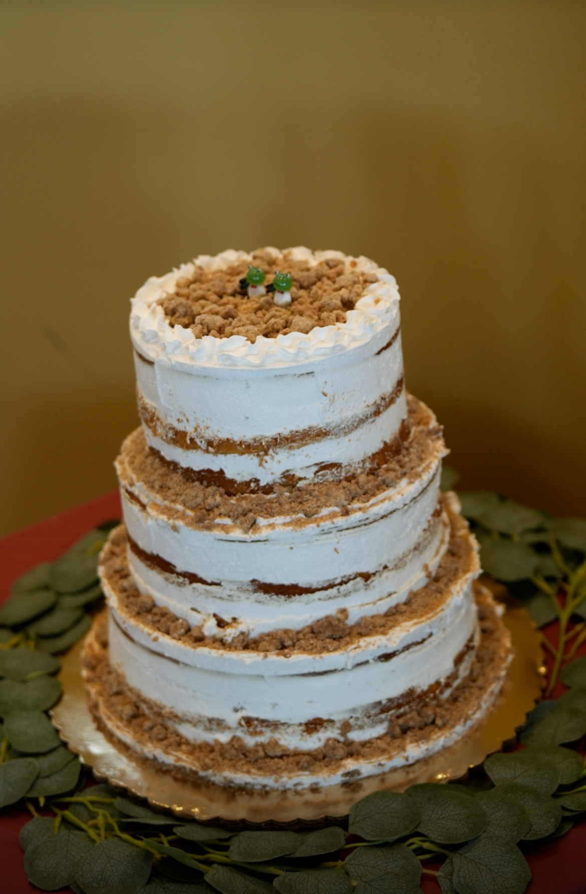 Then we got in contact with Mara bakery and we were assured that our wedding would be complete with our dream cake. The consultation appointment was as much a collaborative effort of our ideas as it was the owners shaping them with their years of expertise in the pastry field. They assured us that not only were ideas possible but made amazing suggestions regarding on the best ways to accentuate the flavor and texture of the classic crumb cake into the larger form of a wedding cake as well as how to structure it so it would keep well until the end of the night. What resulted was delicious and everyone at the wedding either asked outright or sent us messages for the name of the bakery to request similar in the future.