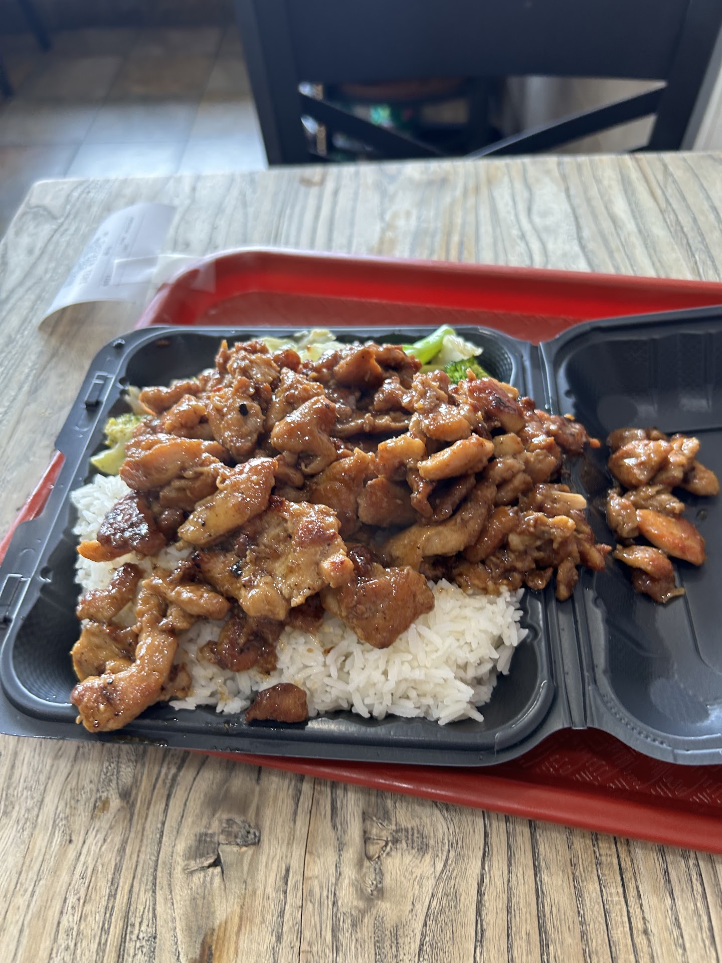 Read moreI like giving local spots a try every chance I get. So I Ordered 2 chicken teriyaki meals using Ubereats. I mean it's chicken teriyaki what could go wrong right...well after this experience never again. The rice, meat & sauce tasted old & wasn't fresh at all. You could tell it was day old food. To make it worse whoever made my platters overloaded both with old stale white rice, MINIMAL chicken & no vegetables. Now It's not as if anything tasted good to begin with but I did pay for a 3 item platter and only recieved 2. For anyone else whose had a good experience here, lucky you but for me I'm...
