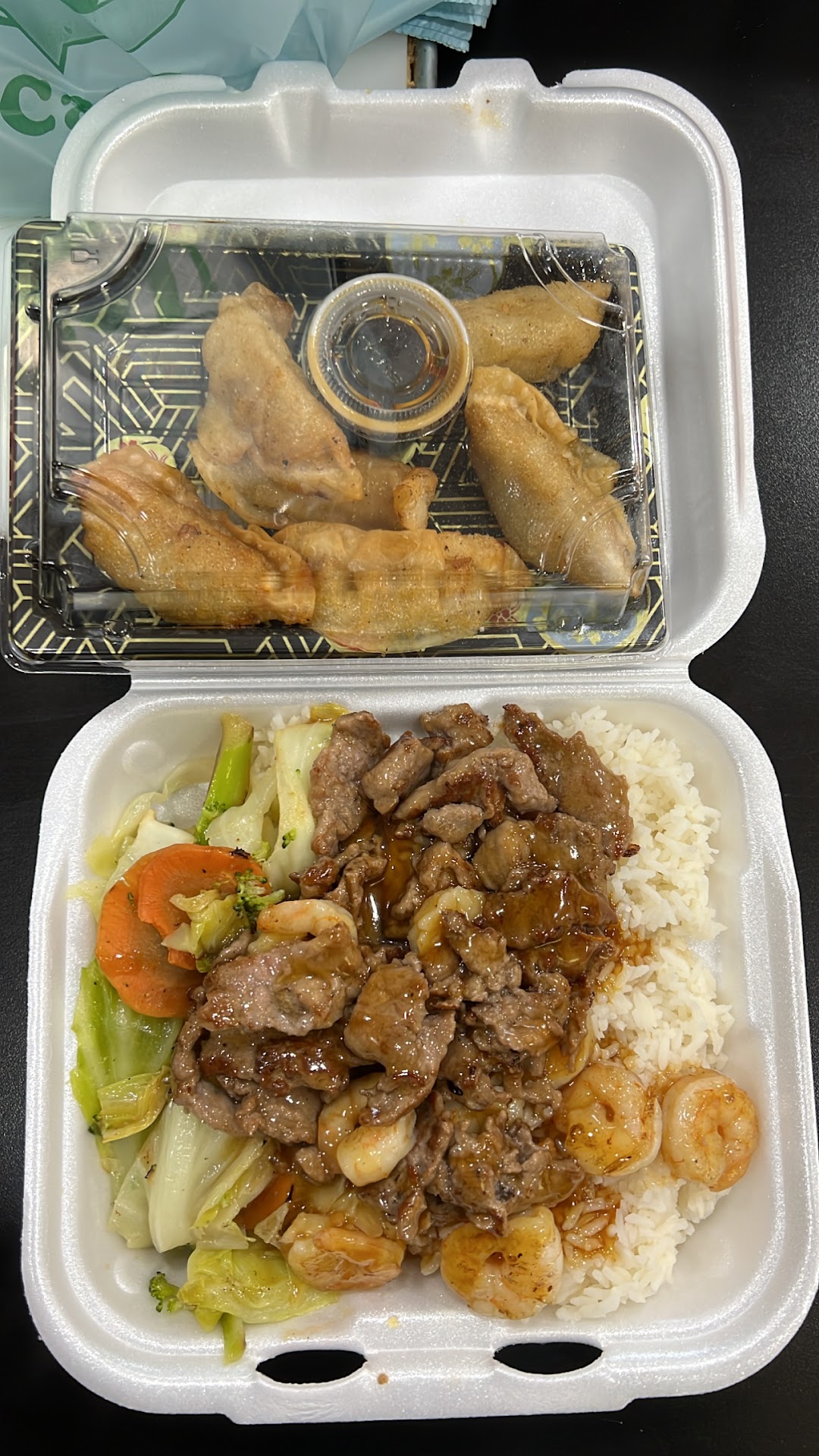 The dumplings and spring rolls are greasy. The teriyaki chicken is dry, over cooked and flavorless. The beef is rubbery and weird. The sauce they use is kinda sweet and mildly salty but lacks depth. The "vegetables" are 90% cabbage of some sort with a little bit of carrot and green beans.