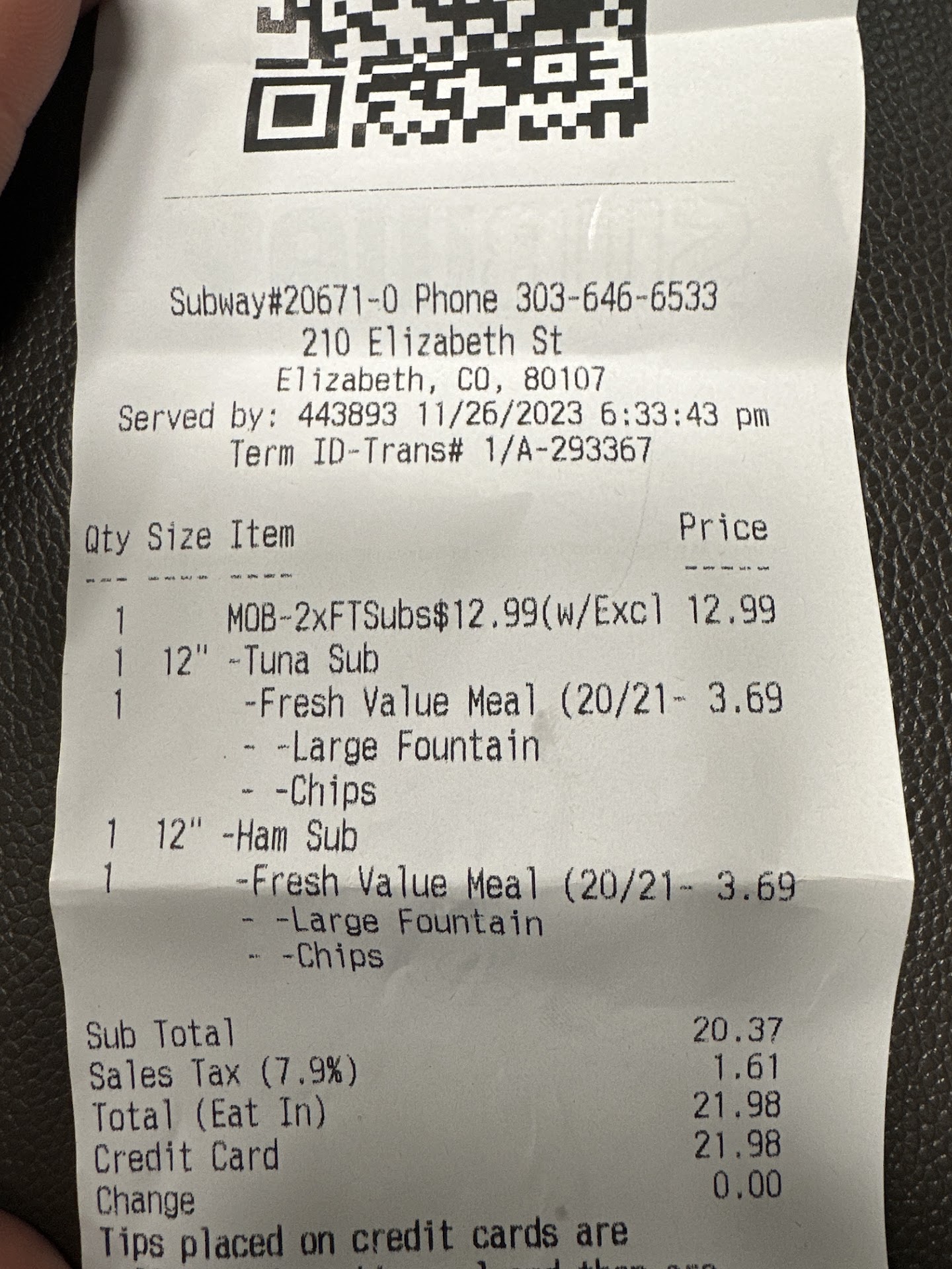 Read moreI ordered five foot-long sandwiches to go for my family. The lady working behind the counter, rolled her eyes and proceeded to apologize to the rest of the line. It’s going to be a minute this man is ordering five sandwiches. It is hard enough ordering five sandwiches from Subway. I tried to do the an order online but their online service was disabled. I had to spend the rest of my time in the store with angry customers behind me. This is not the first time the same server has rolled her eyes when I placed an order. The younger girl, working at the other end of the counter, was very helpful and stepped in to make my order within a reasonable amount of time. A customer should not have to feel guilty for giving their harder earned money for a service they...