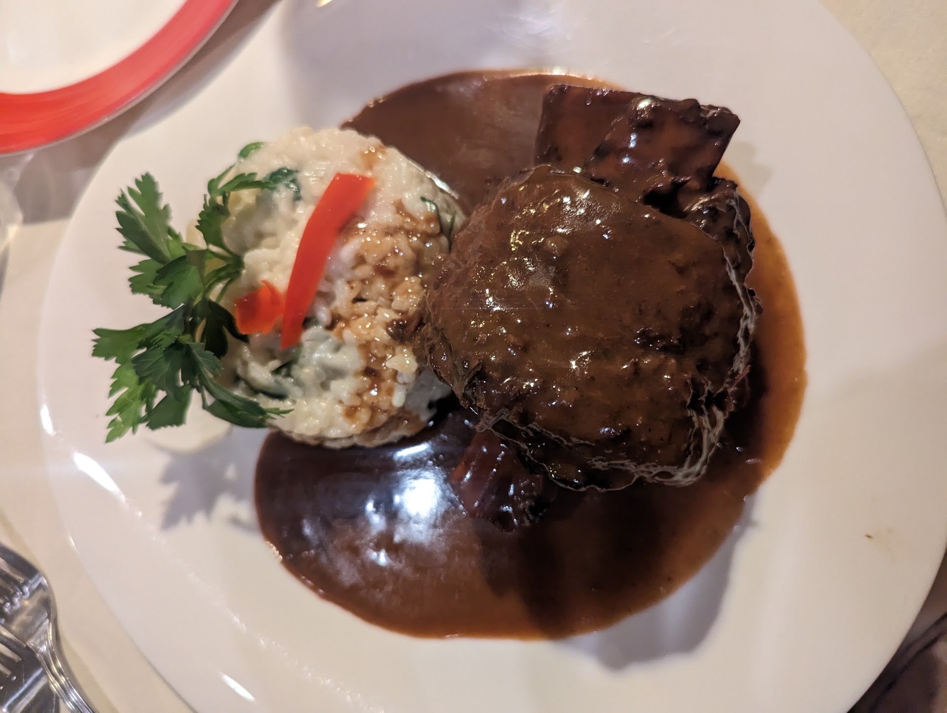 Read moreFirst off, this place is very cozy and cute. As soon as you walk in the hospitality between the bartender and the weight staff is amazing. They have this tomato based topping for the bread and it is amazing. I ordered the short ribs which was on their special and it fell off the bone and it was very rich with flavor. It came with a risotto and the risotto had spinach in it which was also amazing! And it was very creamy and delicious.