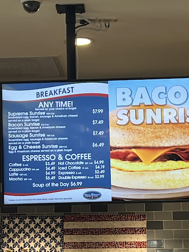 Rude staff, especially the guy (general manager). Also, the sign with the price of the bagels says served on your choice of bagel, and shows the picture with the bagel. When the bill comes, the cost plus tax doesn't add up. When I asked why it was more than supposed to be, he gave me the receipt to figure it out. Now I understand why he was rude in the beginning, asking me to hurry up with the order and having no patience with us choosing the meal as it was our first time there. End of the story: the price on the sign is the filling, but you pay extra for the bagel. Misleading advertising. Plus, the...