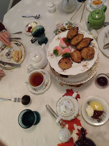 People come from all over to this local favorite to enjoy their lovely dining experience. I'd recommend calling to get a reservation at least a day in advance if you want to enjoy High Tea. We were just there today to celebrate my sister's birthday and the owner and chef, Christine, exceeded our expectations. We were seated in our own little tea room, at a lavish tablecloth setting, served our own pot of tea, and started out with a beautiful salad. Then Christine brought out scones with lemon curd, Irish cream and jelly; chicken salad sandwiches, a delicious ham-turkey-and-cheese french toast sandwich, quiche, gourmet cheese filled mushroom bites, and chocolate chip cookies! She was warm and welcoming, checked on us and refilled our tea pots at the perfect times. She also provided to-go boxes for the food we couldn't...