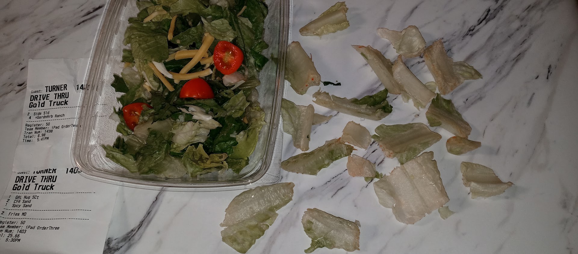 Read moreI went to the Elizabethton ChikFila and went through the drive thru and ordered 2 salads. I got them home and the lettuce in both of them was not only wilted, but it was brown and slimy also. I ordered the cobb salad with NO bacon and the crispy chicken nuggets. The chicken on mine was also cold. I took both salads back to the restaurant. I went inside and explained very nicely that our salads were not fit to eat because the lettuce on both was rotten. The manager I spoke with proceeded to redo my order...she said nothing to me except that she couldn't do anything with my old salads...that I had to throw them away...I only brought them back for proof that they were unfit to eat. Anyway, she replaced both of my salads...she never checked them to be sure they were fresh, she never apologized for my trouble at having to drive all the way back there to get them replaced. I think my meals that night should have been comped by the company. Also, when I got back home, my salad had bacon on it(I had requested NO BACON) and my husband's salad had grilled chicken on it instead of the crispy chicken he had asked for. Honestly, I will not be going back to this Chik-fila for a long time after this. It cost me $20.39 for two salads that even after being replaced were not what I had ordered. I think the company should have offered to refund my money. That is more than fair. I also think that these managers need some training on what good manners are when dealing with the...