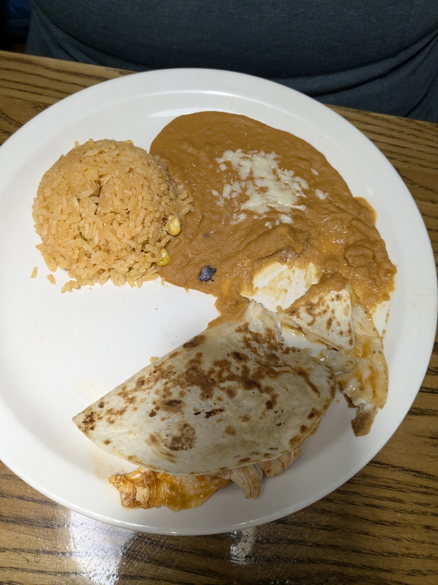 I ordered a chicken with chorizo dish, churrepollo (sp?). The chicken was exceptionally thin and grilled and very tender with the most non-greasy chorizo placed on top. They use that melted white cheese which unless of a fan of as I am shredded, nonetheless it was perfect. This was served with Spanish rice that has pieces of carrot corn and peas in it. Definitely a level up for plain old rice.