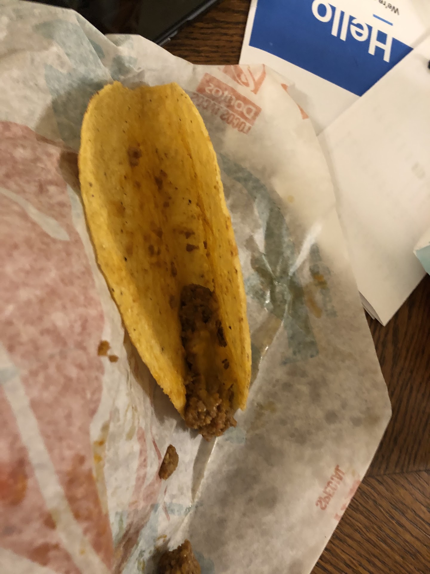 Ā Ā Ā Read moreLast night got Taco Bell again. The worst decision I could have made, especially after talking to the night manager. I called and spoke to her (the manager), she asked what was wrong with our meals. I told her what was wrong with them. Chips so salty you feel your BP going up just looking at them, chicken so dried out you wouldn't even give them to a dog, and chalupas shells were so hard and cold. They were more wrong with it, but before I got to tell her everything, She said you could come back now, why would I want to do that? to get the same mess. I still feel sick the next day. She said they was nothing she could do about it. I had 24 hours to bring food and receipt back. I'm not bringing or taking pics of spit up food. She said it's made in the morning to last all day. Om, that's sad and sickening that the food I get late night has been there all day. Why no one other then morning shift able to make anything there. They always have said something about Taco Bell going right through you, see why now. So called food sitting around all day. Managers that say they can't do anything about the messed up food. It's fixed in the morning to last all day. She also needs to be taught that her job should also be about how she is with customers. My day sucked just like her's may have, but I didn't talk to her like I felt, she works with the public talk to...