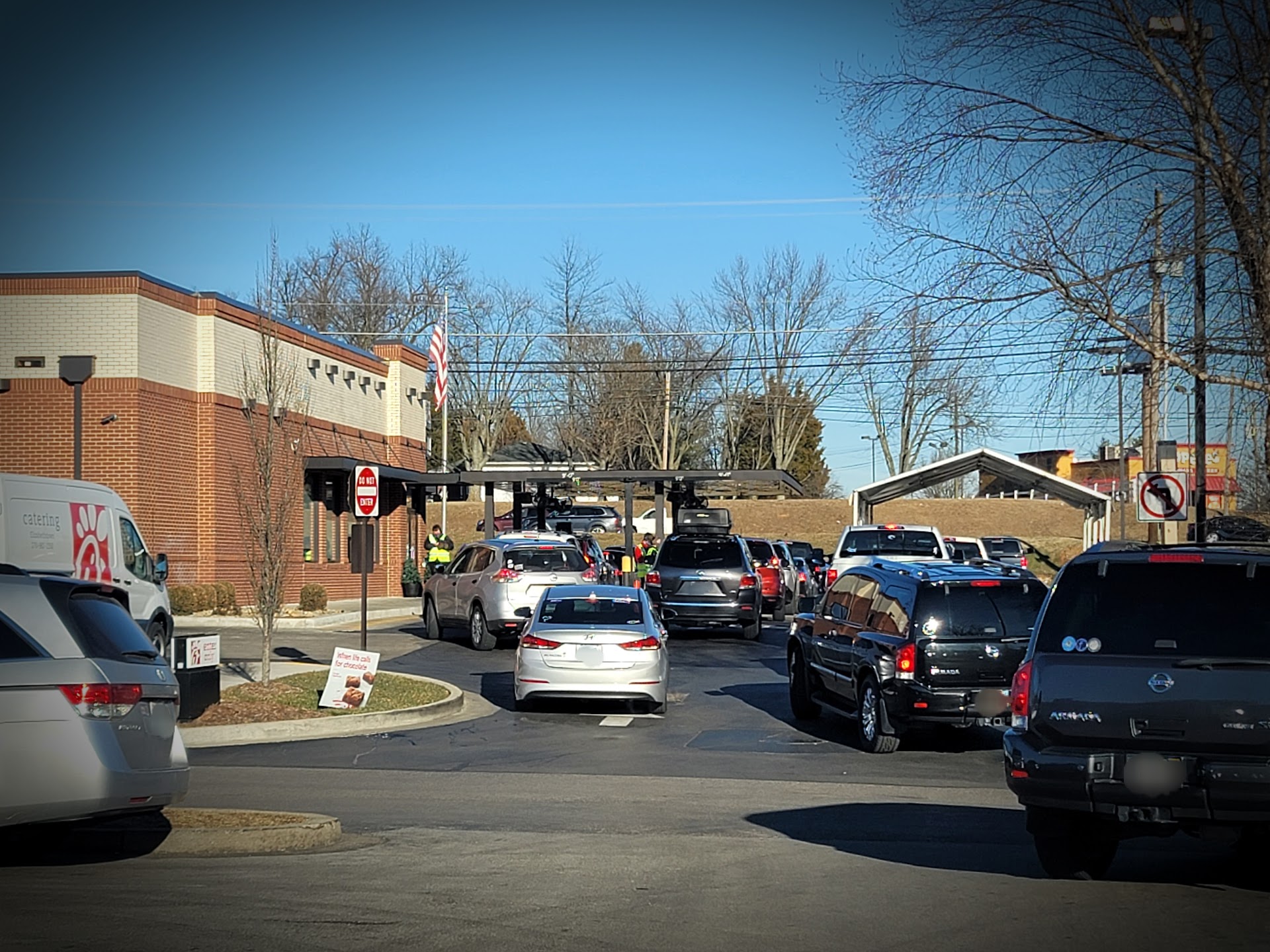 Read moreI have to say, nothing better than a good Chick-fil-A sandwich and an order of waffle fries. The entrance to this particular location is through a "strip mall" shopping area. The lines to go through the drive-thru stretched a good distance, in both directions, into the shopping center access road. These people know excellent customer service to say the least. Every Chick-fil-A drive thru is multi-lane acces and their employees walk to your vehicle, take your order and payment, long before the spot where you would normally order at most drive-thru service locations. I was attempting to eat at dinnertime which was the greatest disappointment I could find. Even though they make every effort to expedite service, the wait time today at this location was more than I had to spare. Therefore, I did not get to satisfy my craving for a delicious chicken sandwich. I find this scenario to be about the same at every location I have visited. While I find there food satisfying and their business policies above expectations, I do not eat there as often as I would otherwise. We disagree on issues and beliefs that don't coincide with my own. That's not just this location but every Chick-fil-A nationwide. While some people I know don't eat there at anytime due to these practices, I will on occasion swallow my pride and eat one every now and then. To each his...