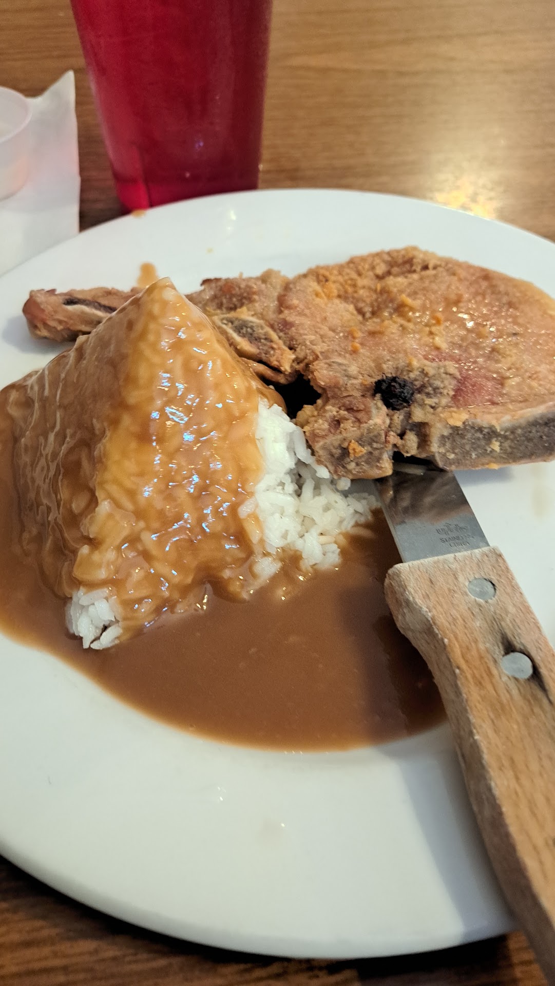My 1st time here and I thought it was great! The food had flavor. Didn't take long to come out, but I knew it was cooked to order. The price was EXCELLENT!!! They closed at 2pm and I got there at 1:30 worried the service would lack due to the time, but not at all. Some people even came after me. The other person in my party had a breakfast platter, grits, eggs, sausage, toast and enjoyed it. It was just 1 pork chop with 2 sides and it was just enough for brunch. They do not have a kids menu, but their prices are ao affordable they don't need one. I also liked the triangle presentation of the rice. It's a bistro style, I'd say....maybe enough for 50 patrons. Servers were nice and there was a tip jar for the cook, filled so that's a good thing. I do pay attention to sanitation scores and they have a 90.5, but I could not tell why from the lobby, all appeared clean to me. I also went to the bathroom and it too was clean. If you go here you will get good food. Next time I come I will try something different. I actually got the daily special and they have like 3 different specials for each day so that's a great selection in addition to the things on their menu. Like I said, great place you should certainly try and be sure to tip your waitress, because it is a smaller place and...