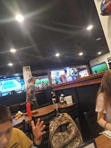 Went there for the first time and it looked like any sports bar/restaurant but maybe more brighter lighting than the usual pub look they go for. We had about a 30 minute wait despite it being a weekday dinner. Once seated, the chairs were like sliding across the floor. Not sure if that was from the pads on the bottom or the grease? Hoping it was the pads. But let's just say, the kids and adults played around with the ice skate chairs. Service was a little crazy, again, there wasn't many people there on a weekday and yet we had a frazzled waitress, and saw almost 3 more servers throughout the night but all seemed to know different things that when you asked the other, They didn't. Even with having almost 3 waitresses, we didn't get refills unless we flagged someone down to get them. It was forgotten several times. As were some of the requests for extra sauce (this is a wing place) and the change of drink because the kids hated the sweet tea. Girls did not like the fried pickles and that has like never happened. The mozzarella sticks were good though. As were the salsa, and queso with chips. Also, side rant, why does no place have drink options for kids that aren't soda (trash), pink lemonade (red dye allergy- but also trash for anyone and everyone) or sweet tea (diabetes)? What happened to orange juice, apple juice, milk, or even like blue Powerade/Gatorade? 🤔 Also, they forgot my salad so I ended up taking it home. All in all, was not surprised impressed. I will say they had Cappy Snacks on tap though! Which is rare to find so that was the saving grace that took this from a 2...